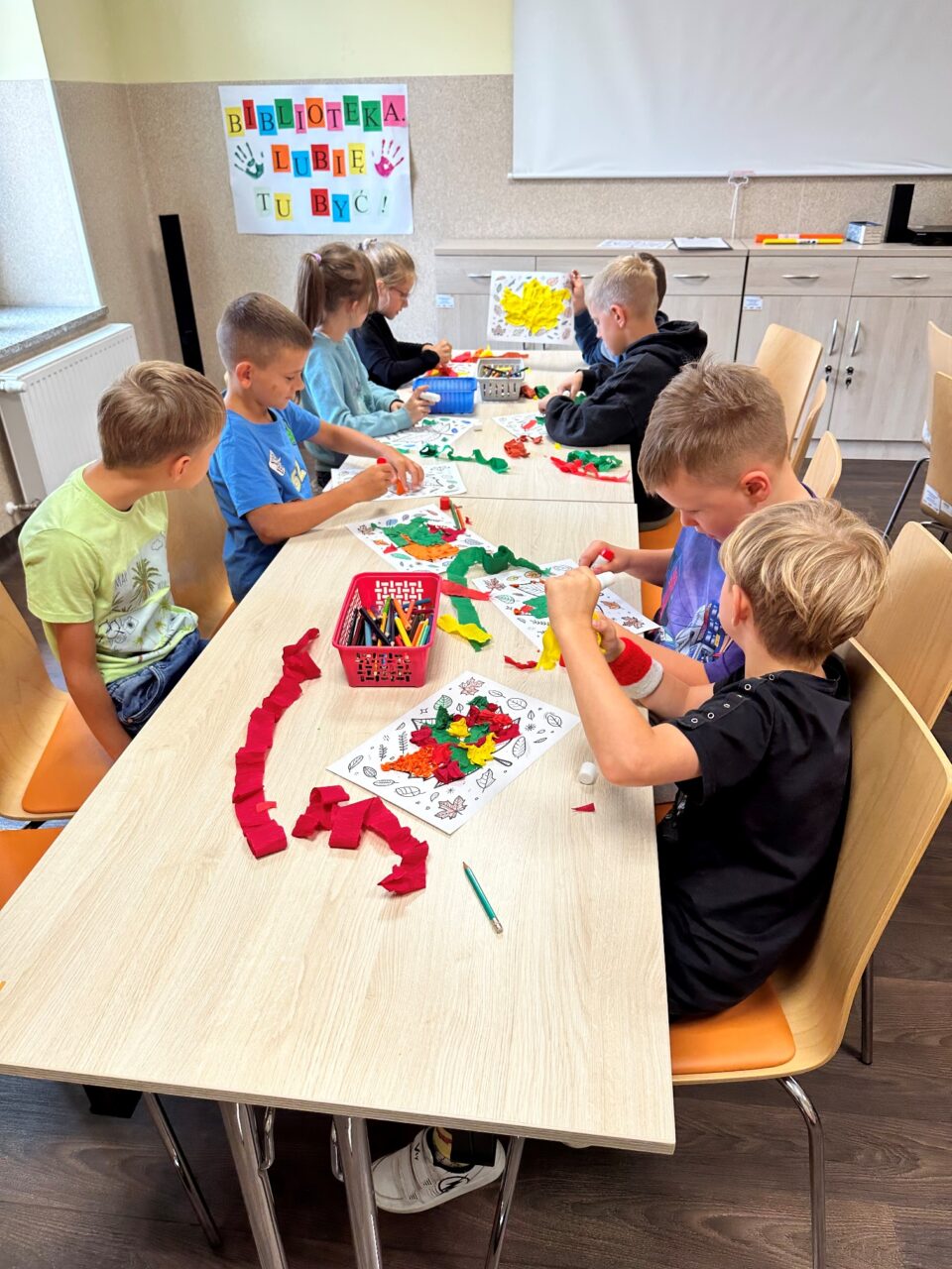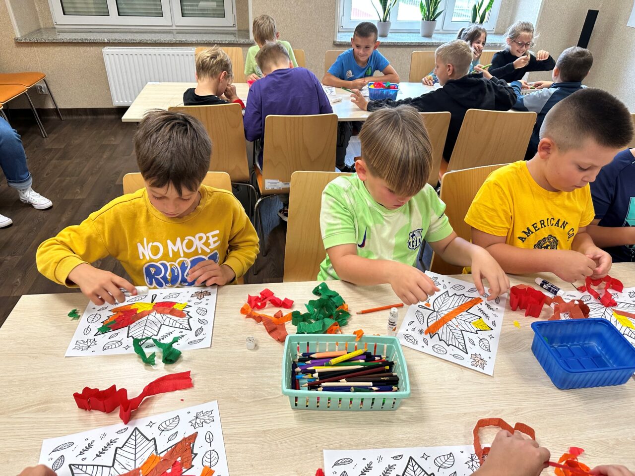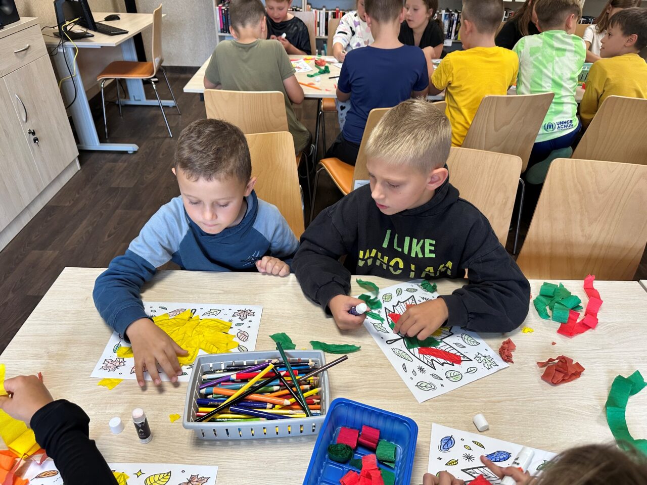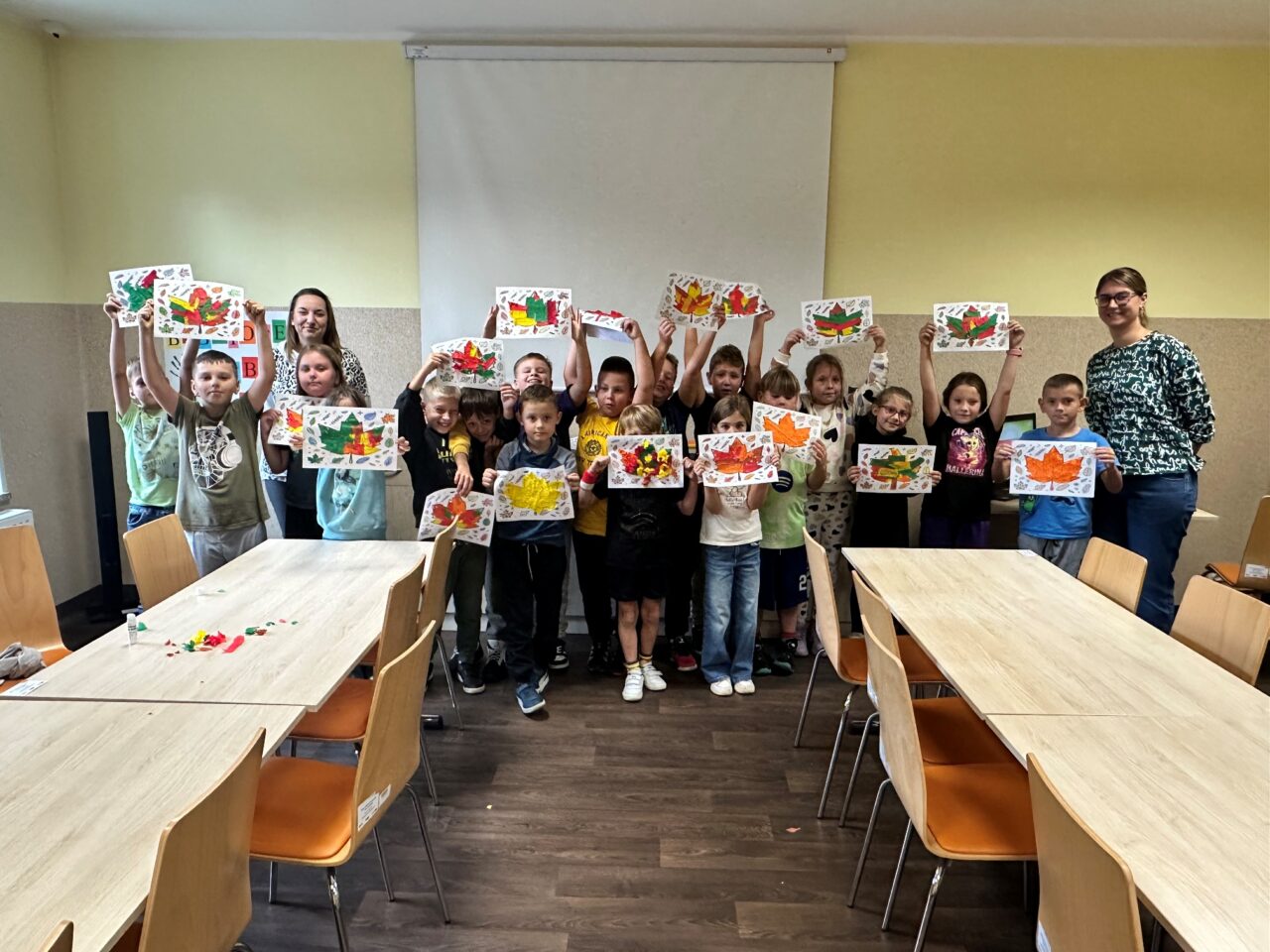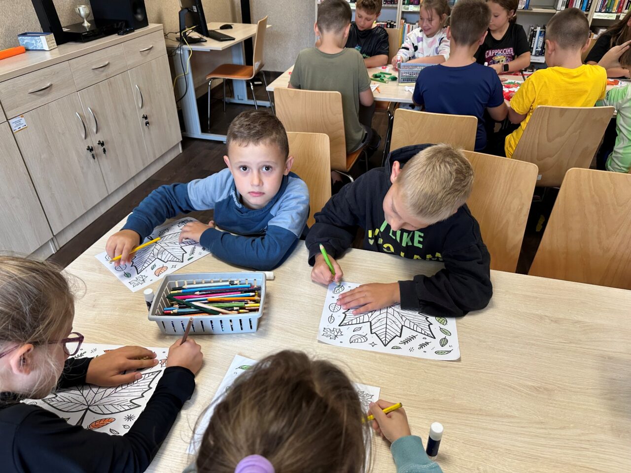 Dnia 17.09.2025 roku klasa II a odbyła wizytę w Bibliotece pod Atlantami – Filia w Sobięcinie. Podczas pobytu klasa obejrzała film edukacyjny opowiadający o jesieni, a także uczniowiewyklejali kolorową bibułą szablony liści. V. Ilejko