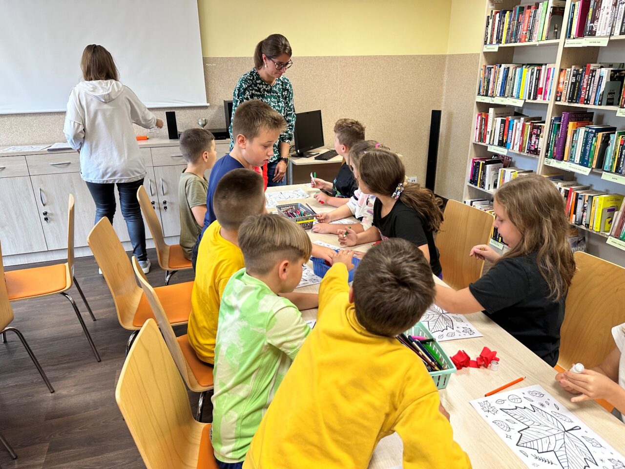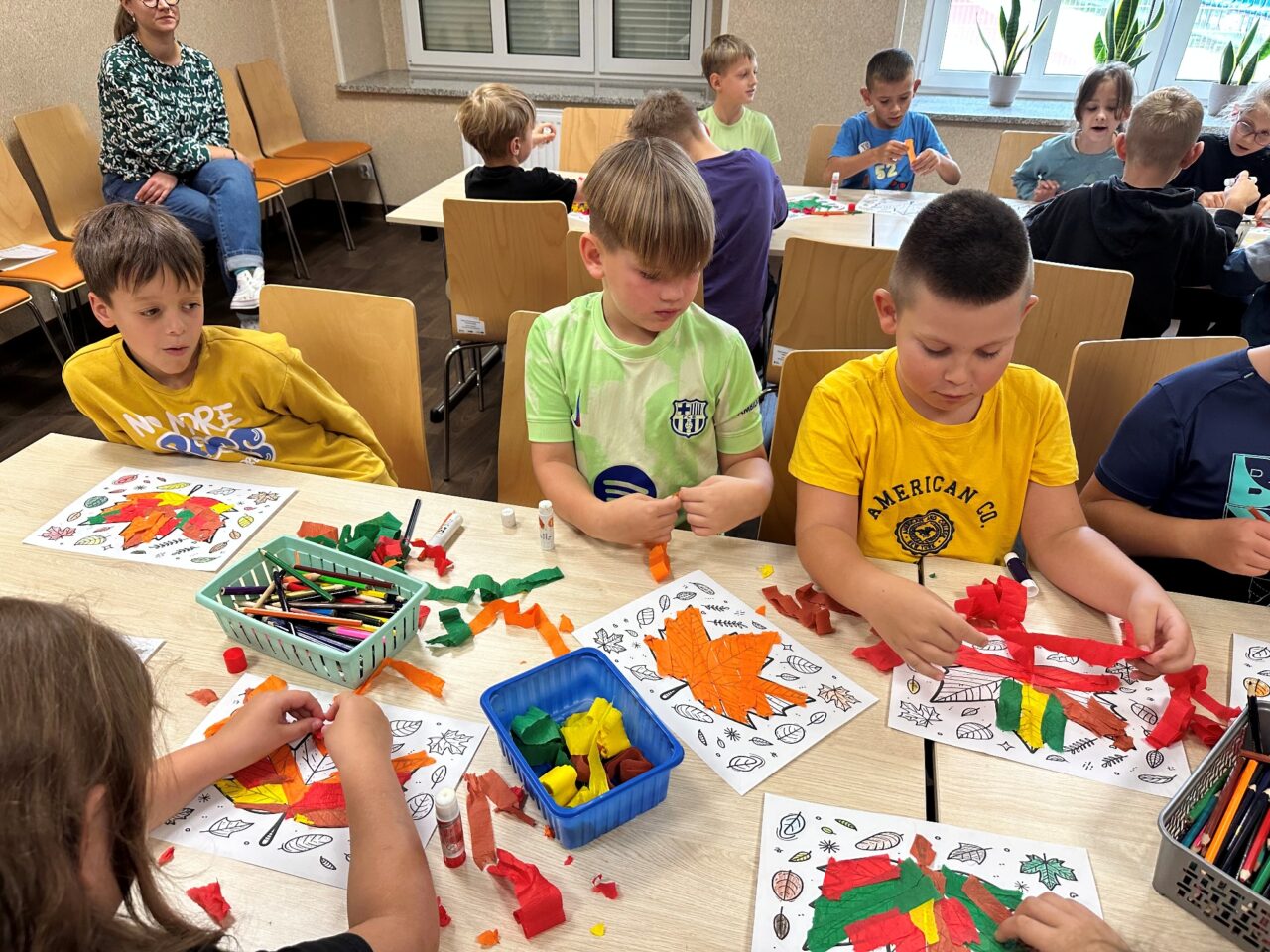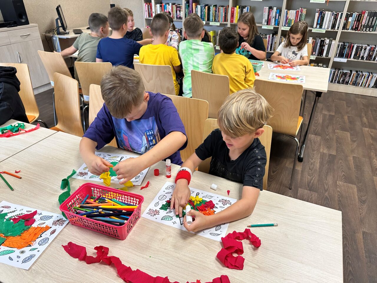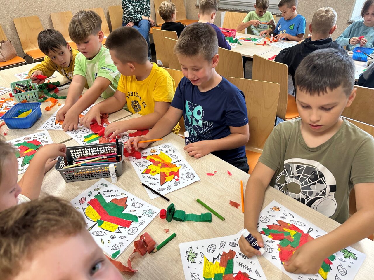 Dnia 17.09.2025 roku klasa II a odbyła wizytę w Bibliotece pod Atlantami – Filia w Sobięcinie. Podczas pobytu klasa obejrzała film edukacyjny opowiadający o jesieni, a także uczniowiewyklejali kolorową bibułą szablony liści. V. Ilejko