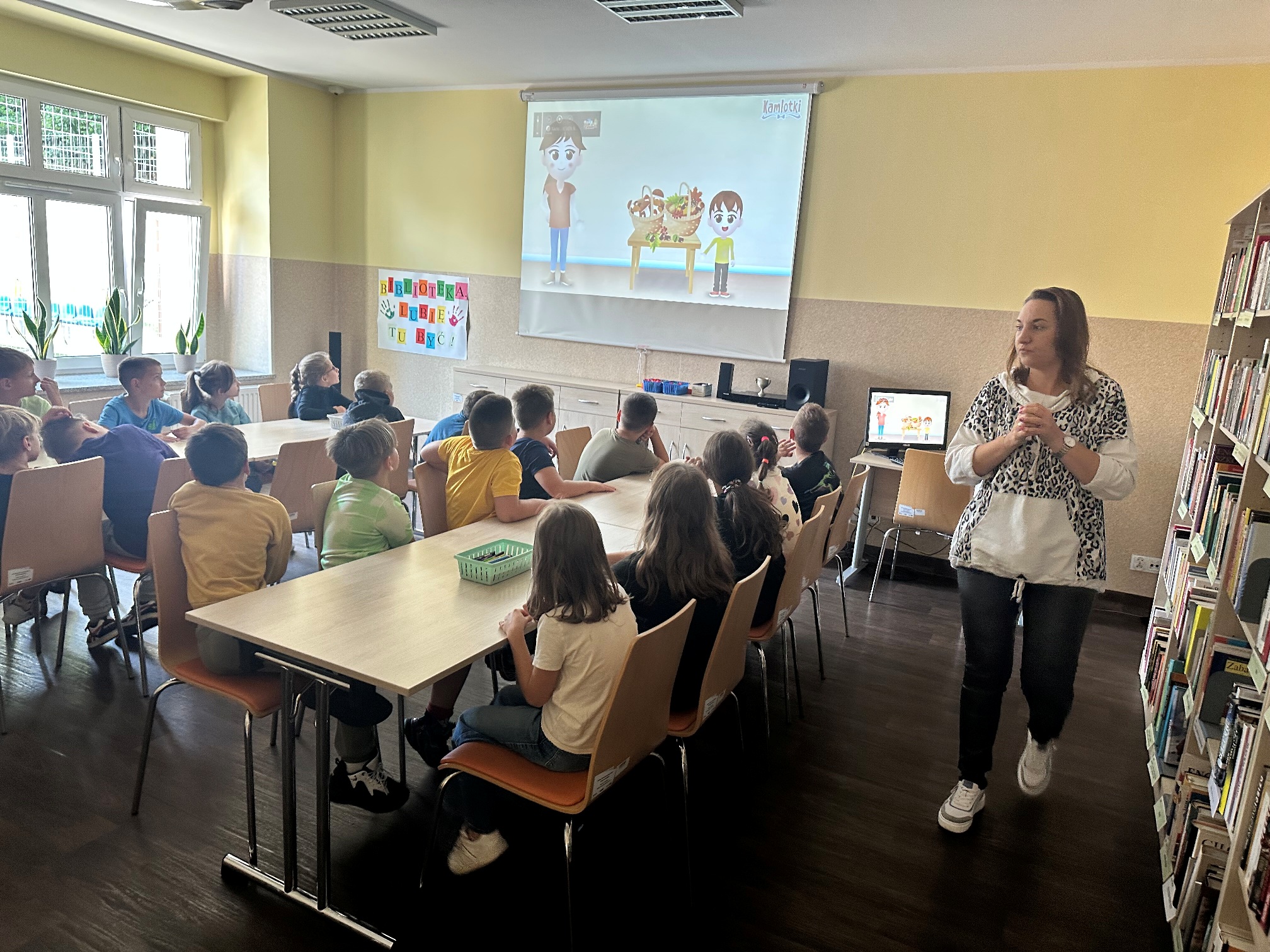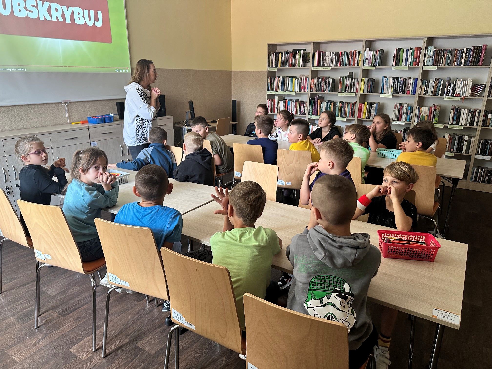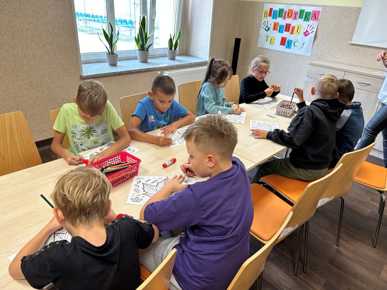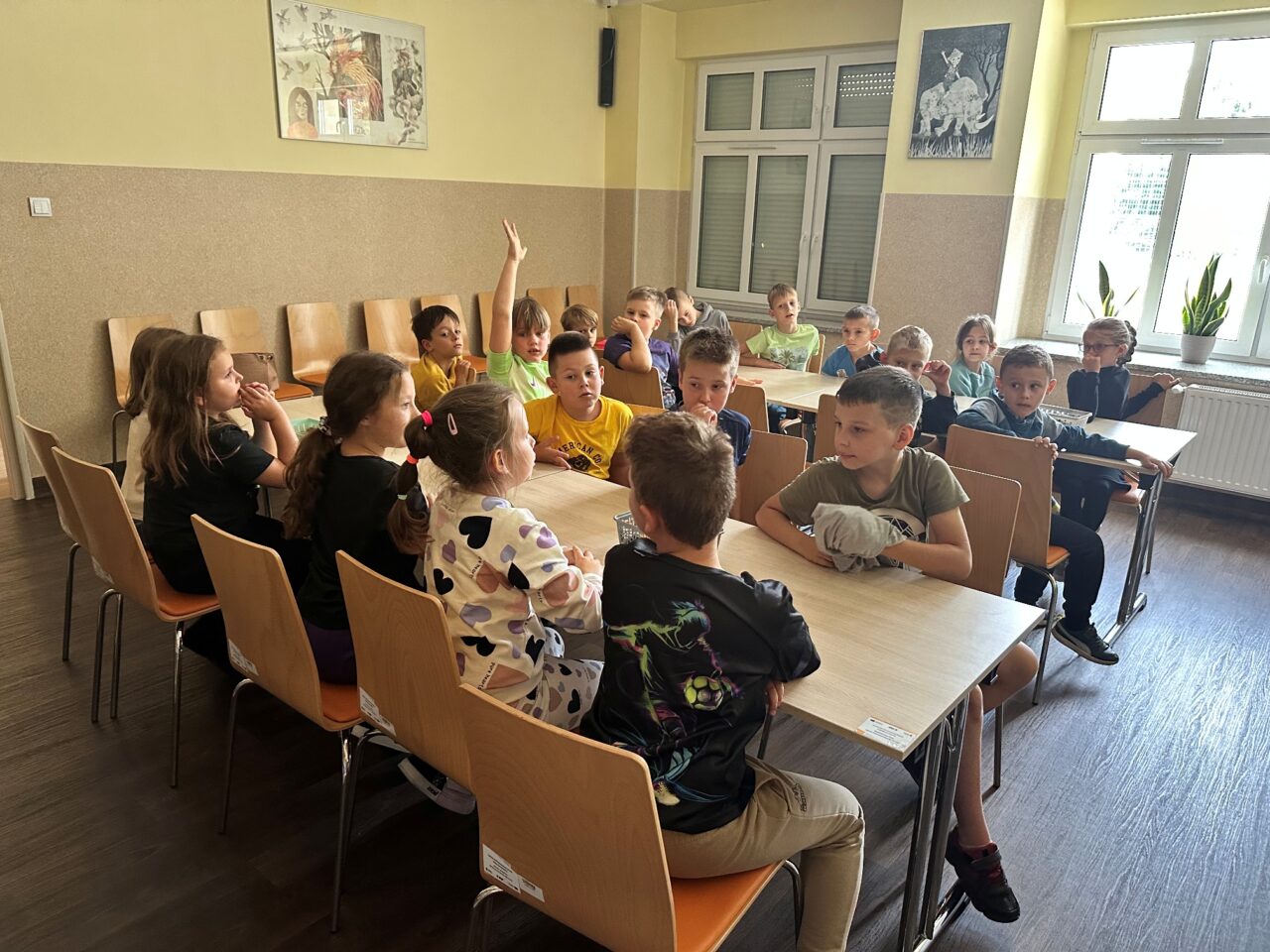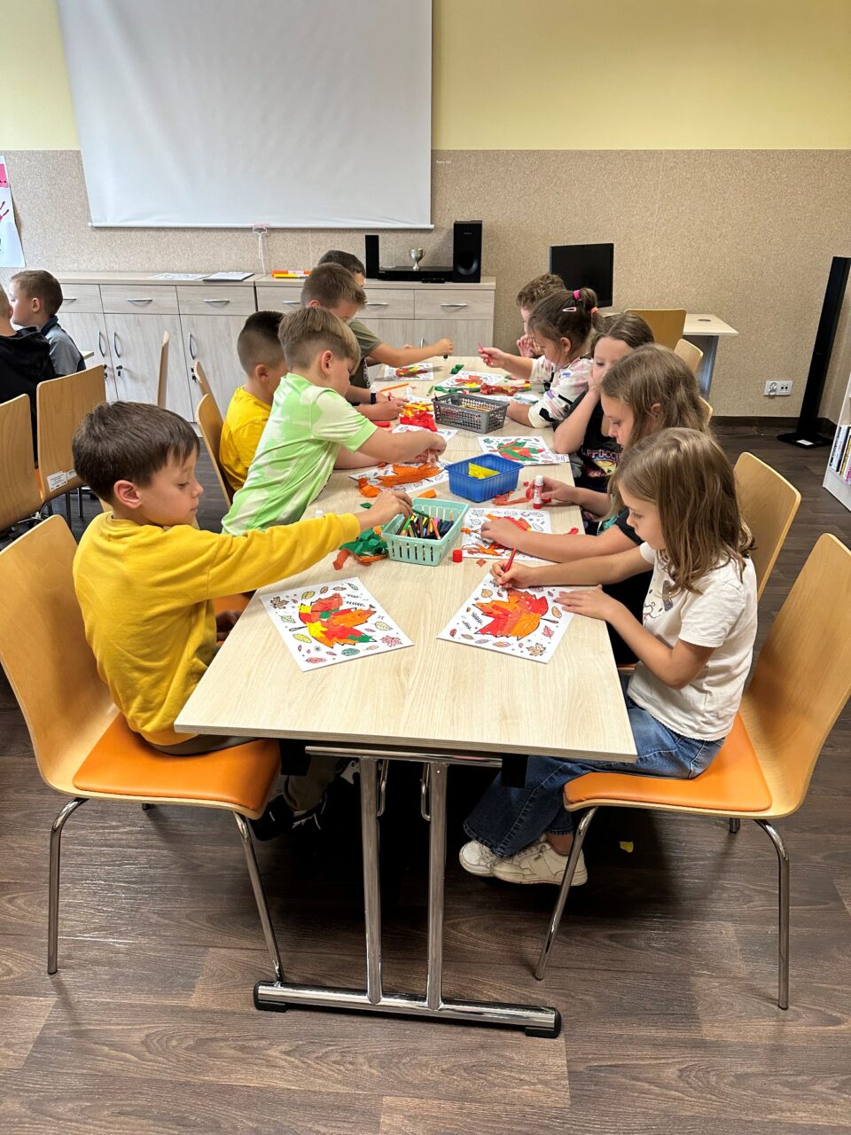 Dnia 17.09.2025 roku klasa II a odbyła wizytę w Bibliotece pod Atlantami – Filia w Sobięcinie. Podczas pobytu klasa obejrzała film edukacyjny opowiadający o jesieni, a także uczniowiewyklejali kolorową bibułą szablony liści. V. Ilejko