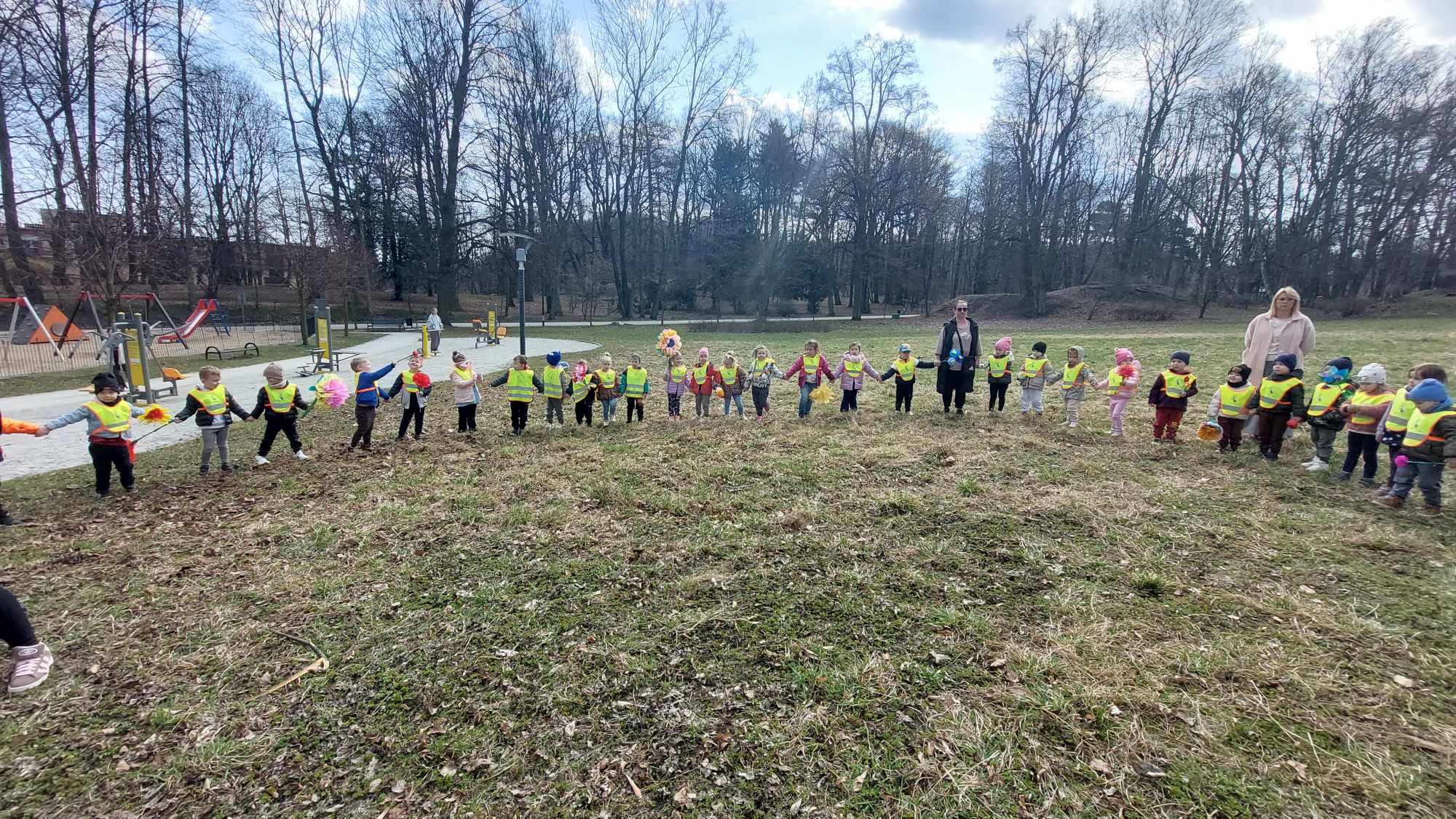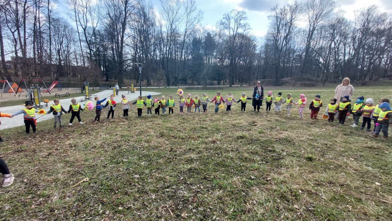 W poniedziałek 23 marca wszystkie dzieci z naszego przedszkola świętowały nadejście wiosny. Z tej okazji wybraliśmy się na spacer do parku w celu pożegnania zimy i przywitania wiosny. Dodatkowo obchodziliśmy dzień kolorowej skarpetki w ramach Światowej Dnia Zespołu Downa.