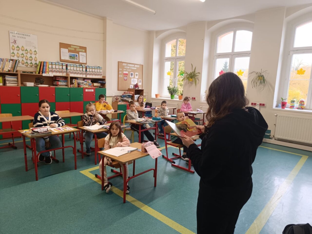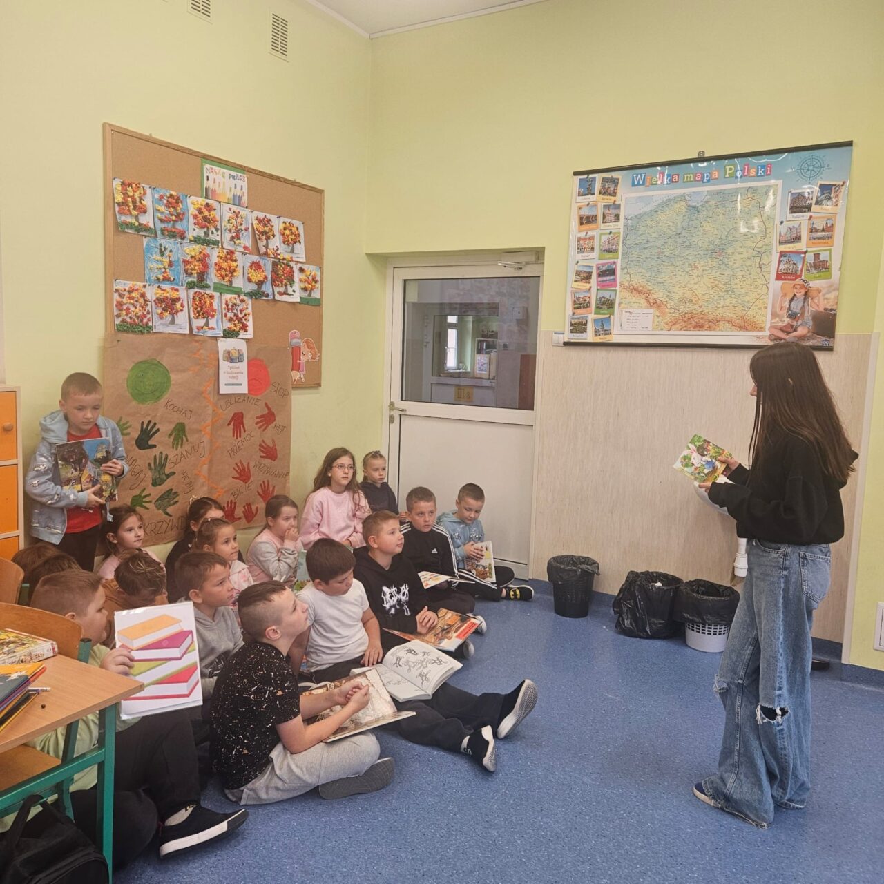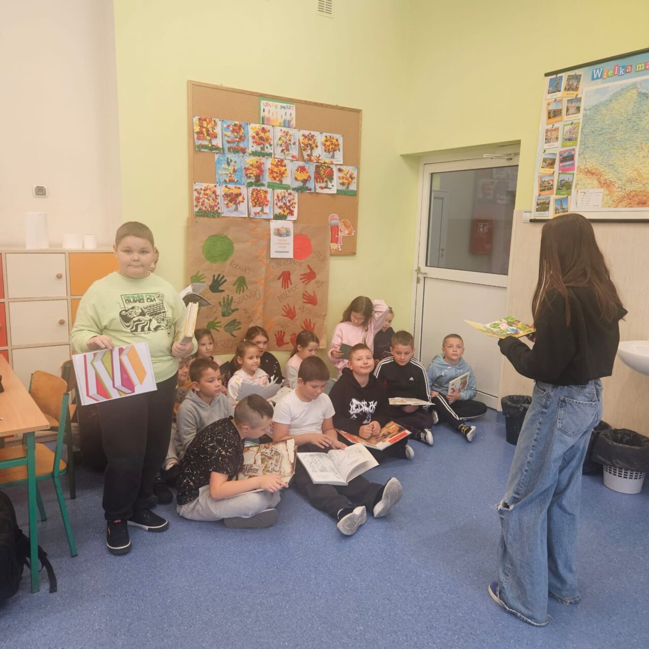 AKCJA „PRZERWA NA CZYTANIE” po raz kolejny odbyła się w ZSP nr1 w dniu 16.10.2025r. Dzieciom przedszkolnym czytały bajki uczennice z kl. VI a. Do czytania na przerwie włączyli się także pracownicy szkoły. To doskonała okazja, aby zachęcić uczniów do odkrywania książek i rozwijania swoich zainteresowań. Dziękuje wszystkim za wspólne czytanie.