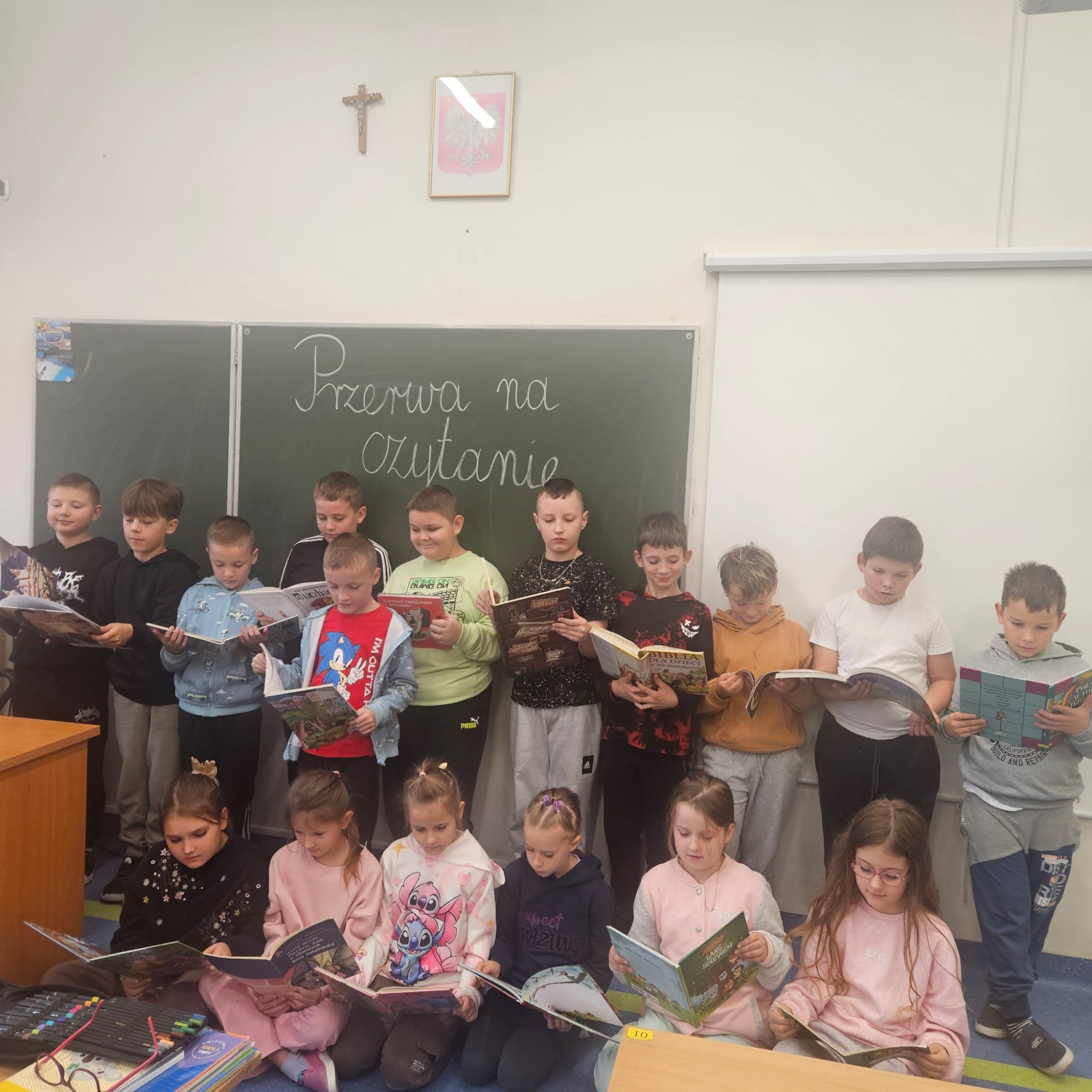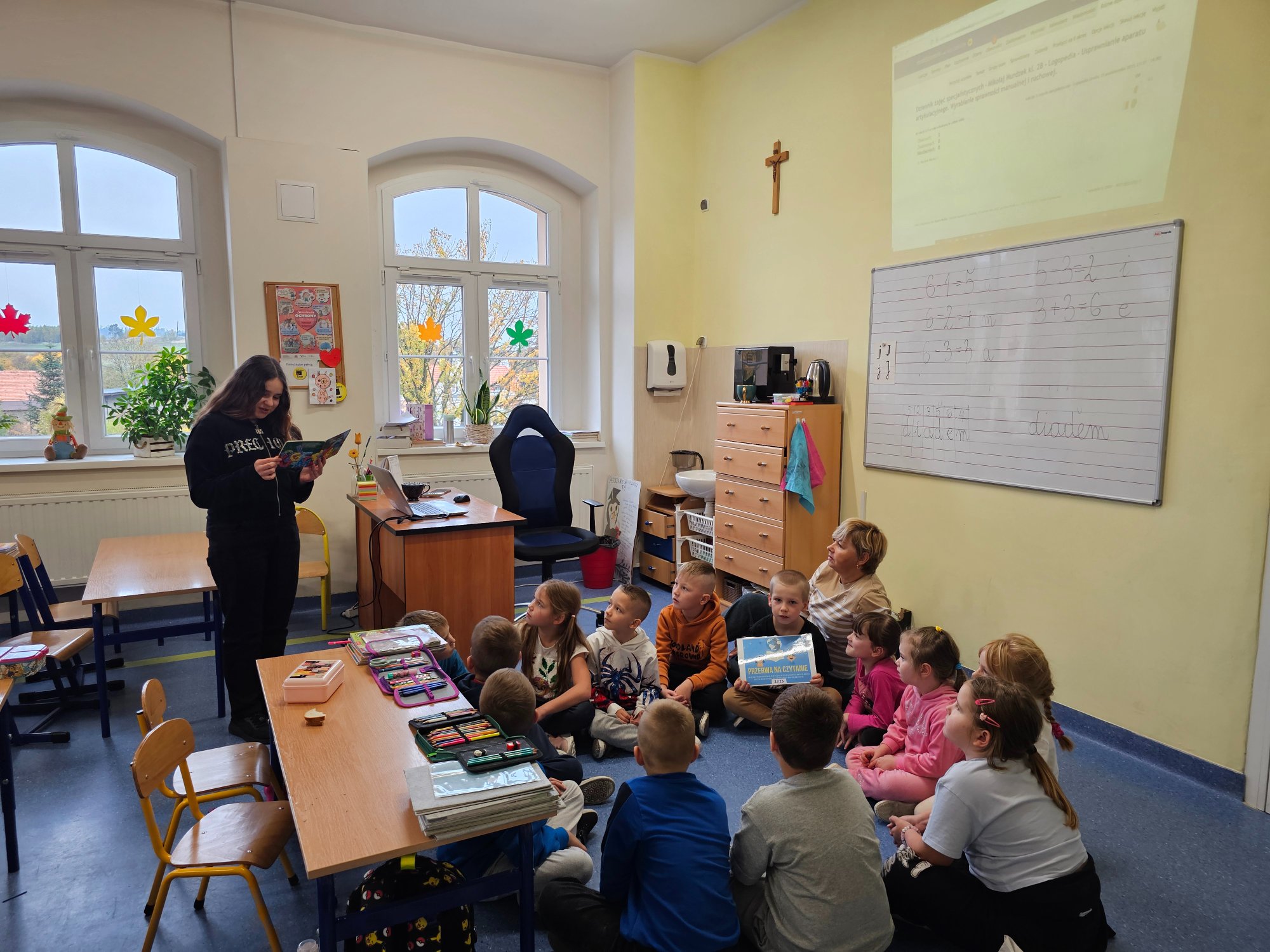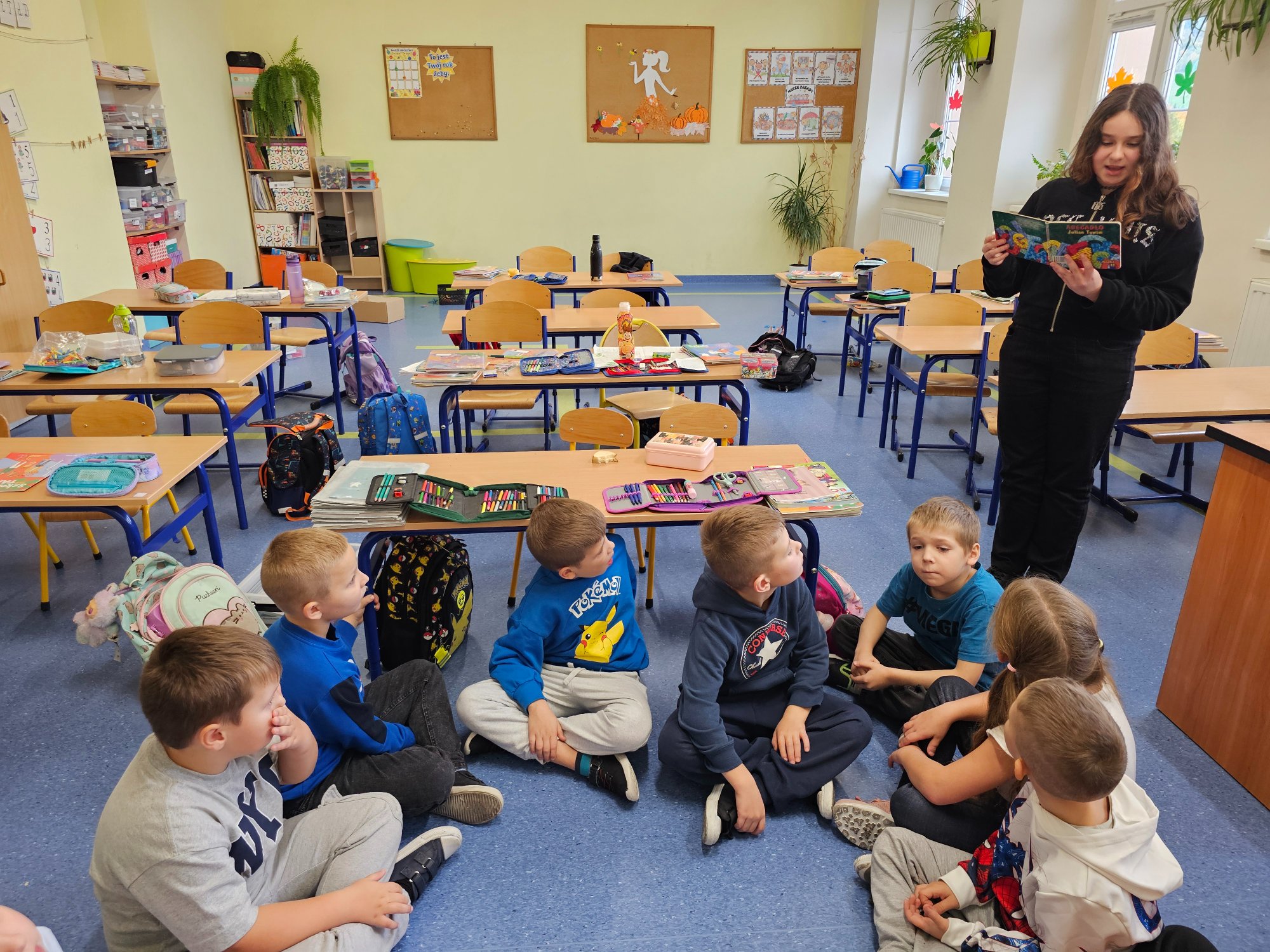AKCJA „PRZERWA NA CZYTANIE” po raz kolejny odbyła się w ZSP nr1 w dniu 16.10.2025r. Dzieciom przedszkolnym czytały bajki uczennice z kl. VI a. Do czytania na przerwie włączyli się także pracownicy szkoły. To doskonała okazja, aby zachęcić uczniów do odkrywania książek i rozwijania swoich zainteresowań. Dziękuje wszystkim za wspólne czytanie.