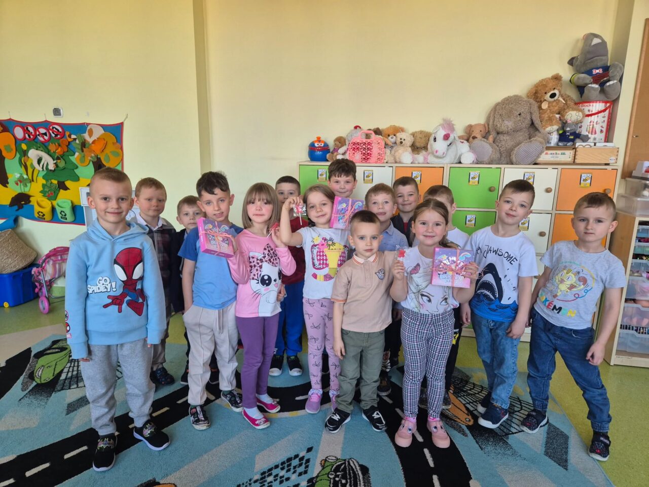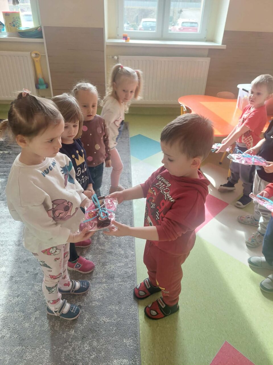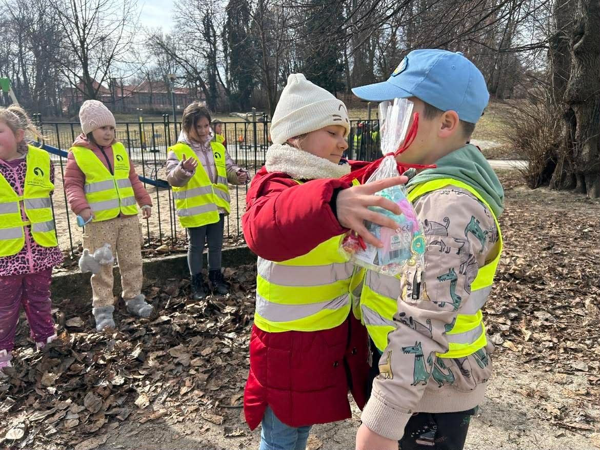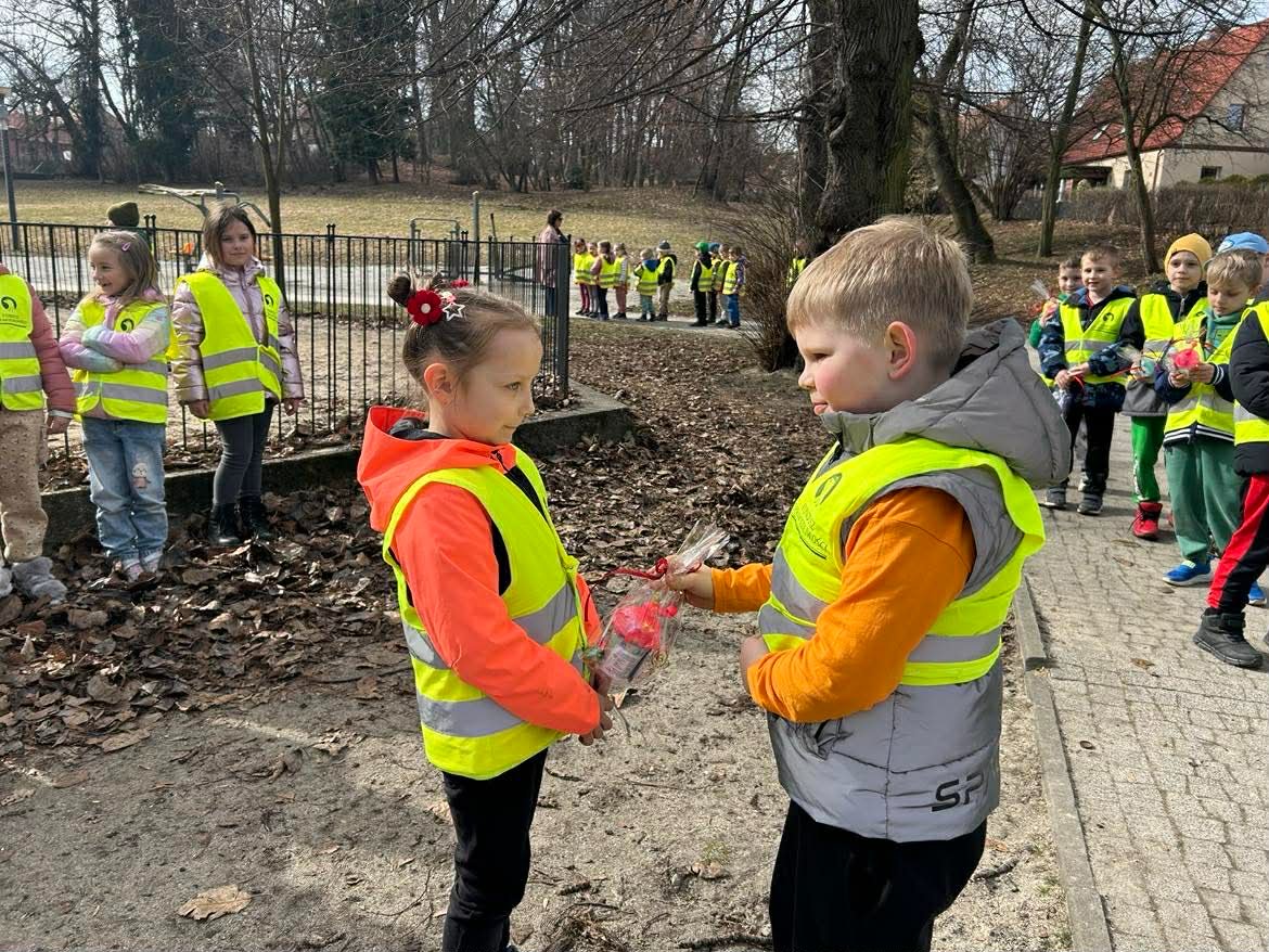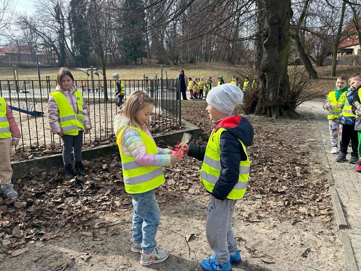 W poniedziałek 9 marca 2026r. w przedszkolu obchodziliśmy Dzień Kobiet. W tym radosnym dniu chłopcy obdarowali koleżanki drobnymi prezentami. Grupy: ,,Sówki”, ,,Pszczółki’ i ,,Papużki” udały się do parku. Nauczyciele zorganizowali tam zabawy tematyczne. Było wiele radości i uśmiechu w przyjemnej atmosferze .