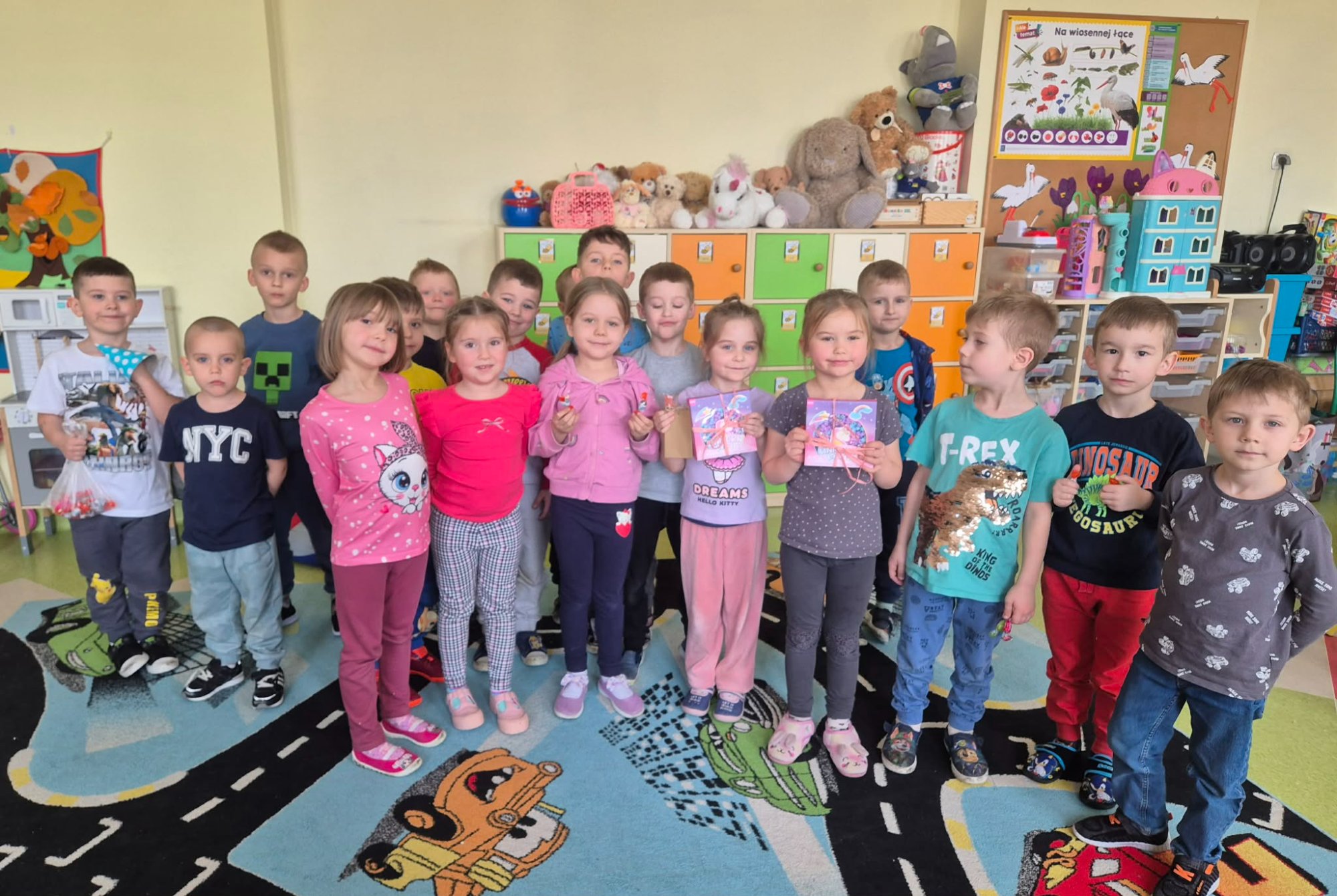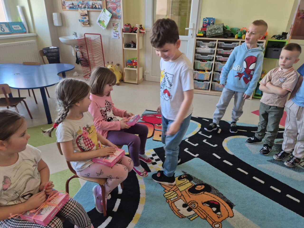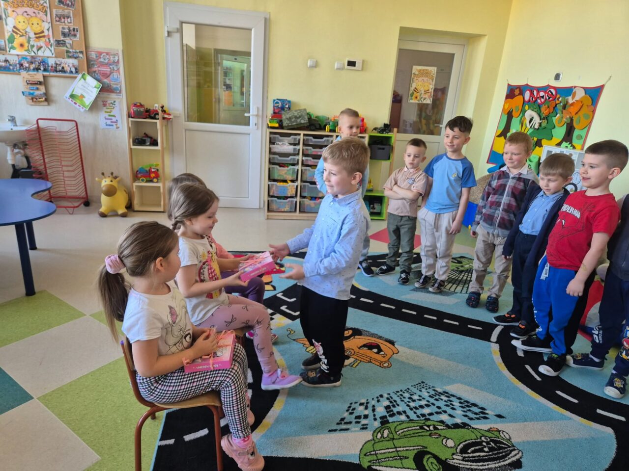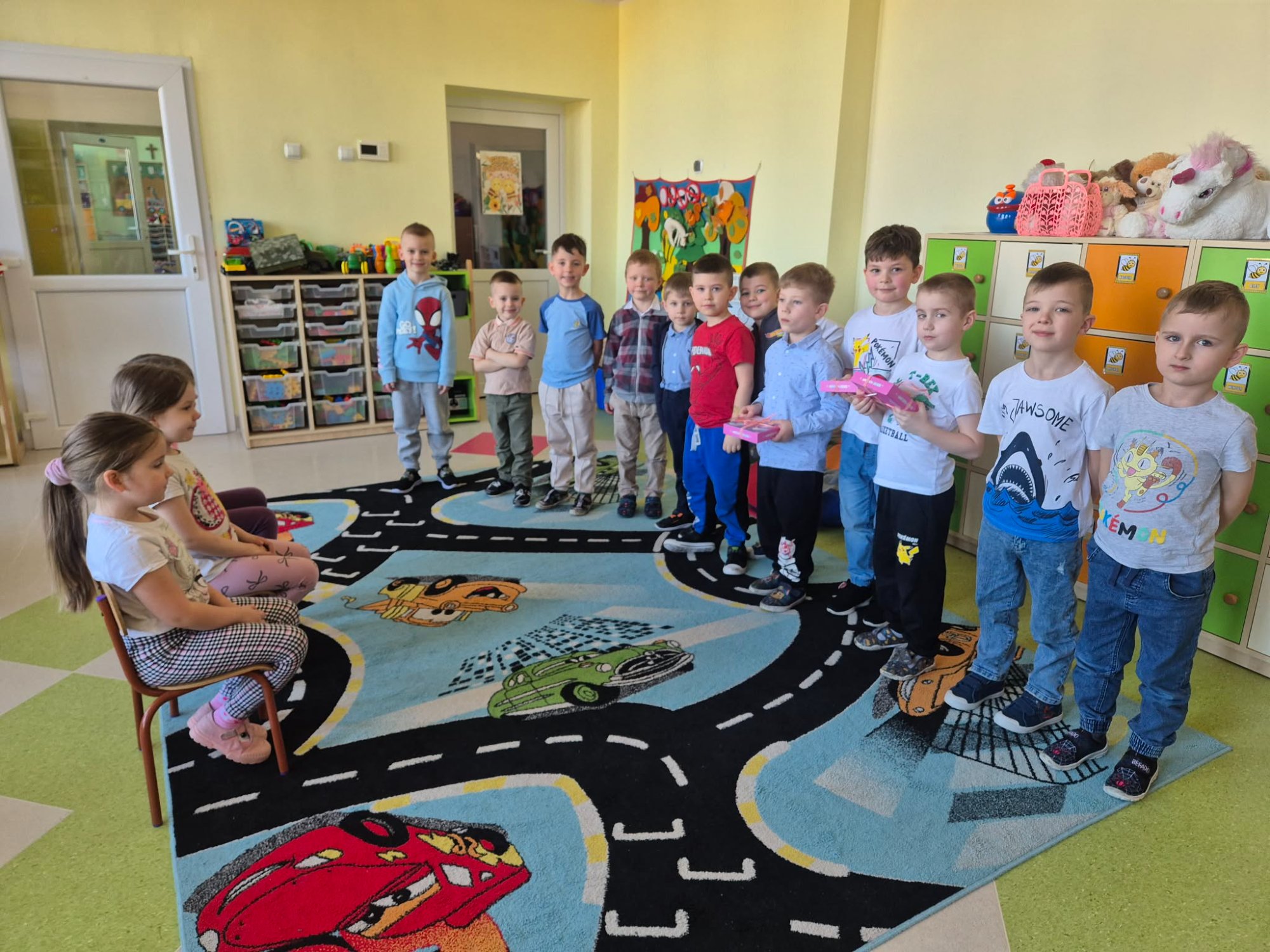 W poniedziałek 9 marca 2026r. w przedszkolu obchodziliśmy Dzień Kobiet. W tym radosnym dniu chłopcy obdarowali koleżanki drobnymi prezentami. Grupy: ,,Sówki”, ,,Pszczółki’ i ,,Papużki” udały się do parku. Nauczyciele zorganizowali tam zabawy tematyczne. Było wiele radości i uśmiechu w przyjemnej atmosferze .