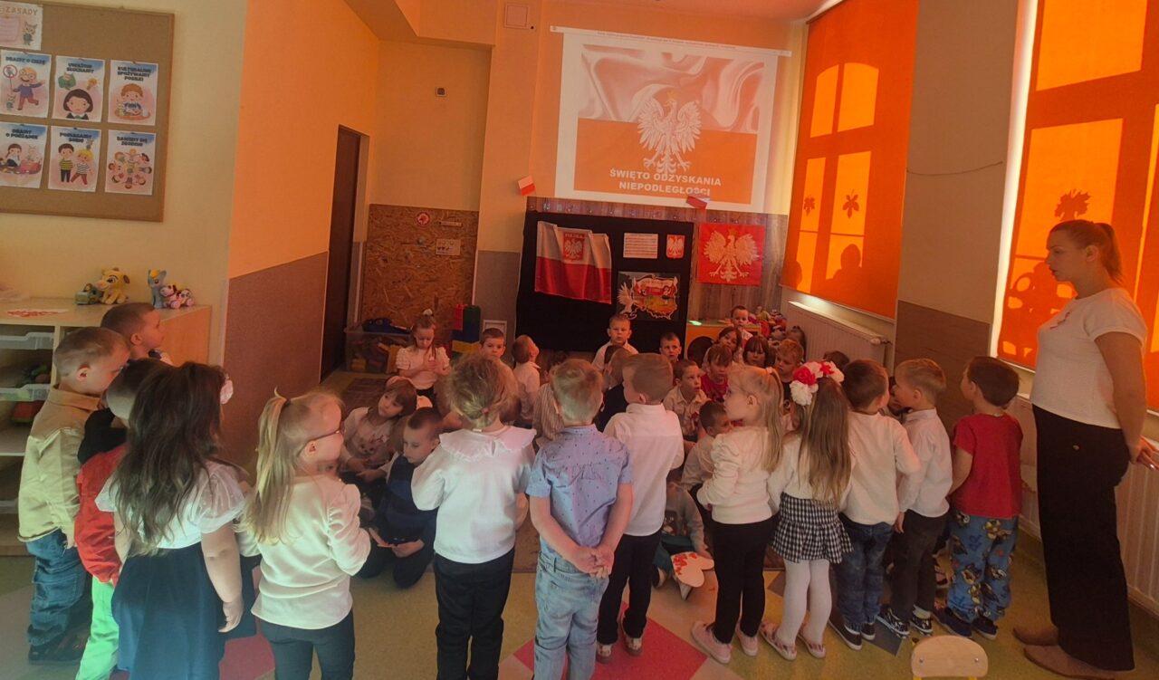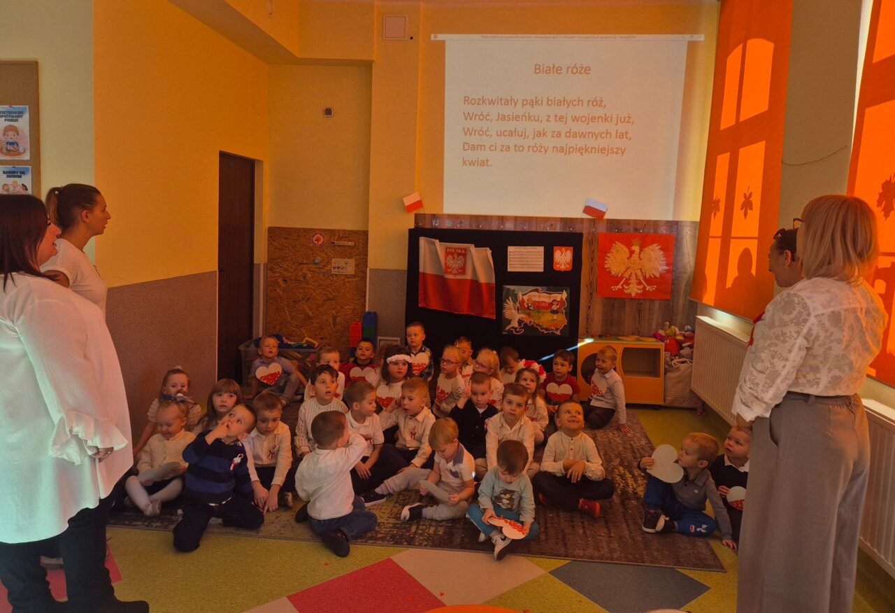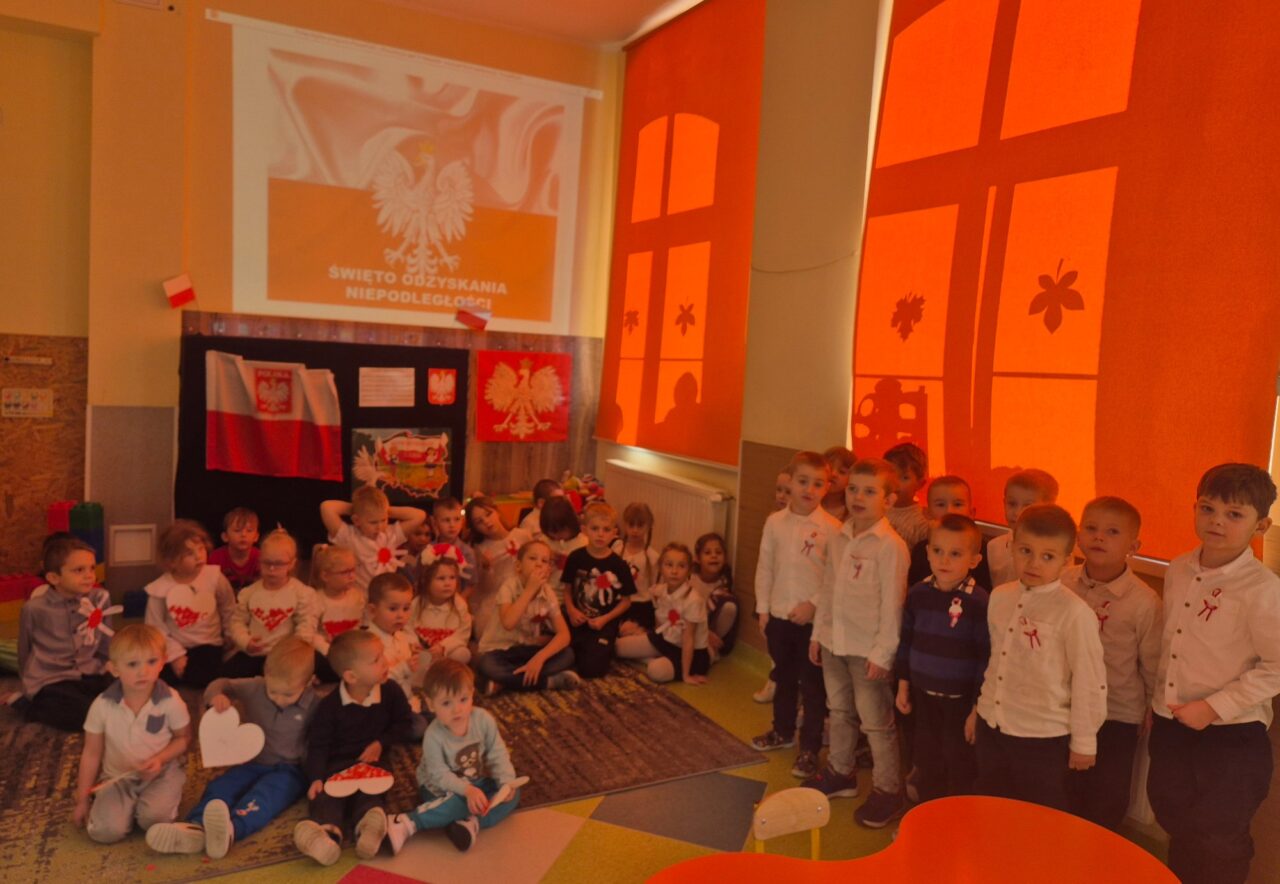 Dzień 11 listopada to jedna z najważniejszych dat w historii naszej ojczyzny. W przedszkolu od najmłodszych lat uczymy dzieci patriotyzmu i przywiązania do swojej ojczyzny oraz wpajamy szacunek dla polskich symboli. Dlatego też 7 listopada z okazji Narodowego Święta Niepodległości dzieci z naszego przedszkola uczestniczyły w Koncercie Patriotycznym „Nauczyciele dzieciom” oraz uroczyście zaśpiewały Hymn.