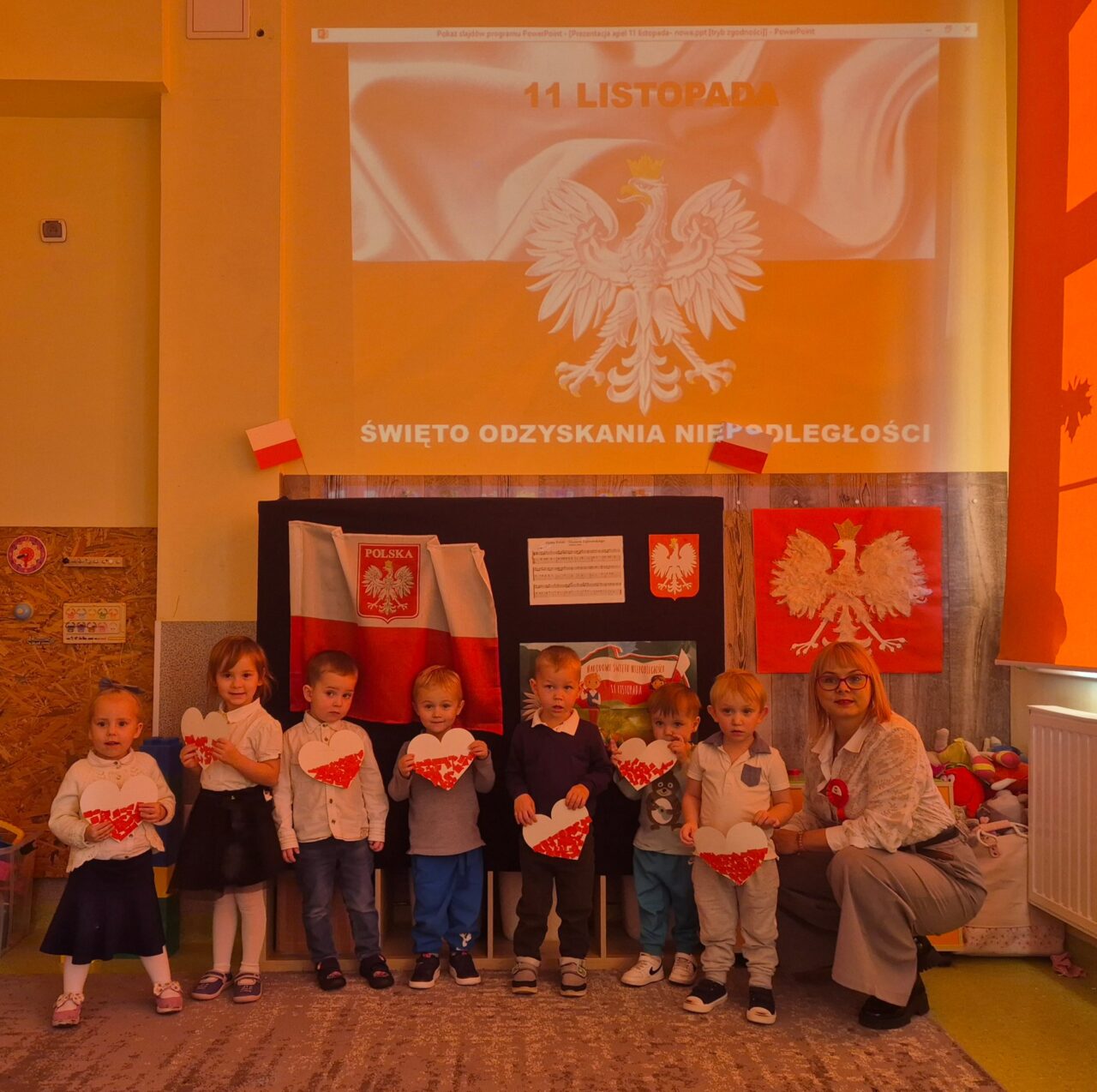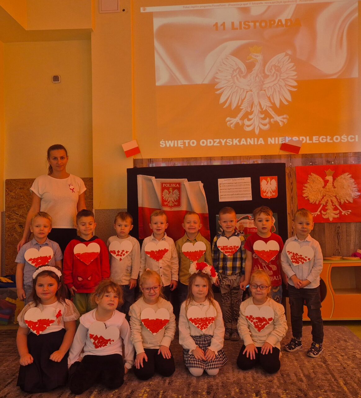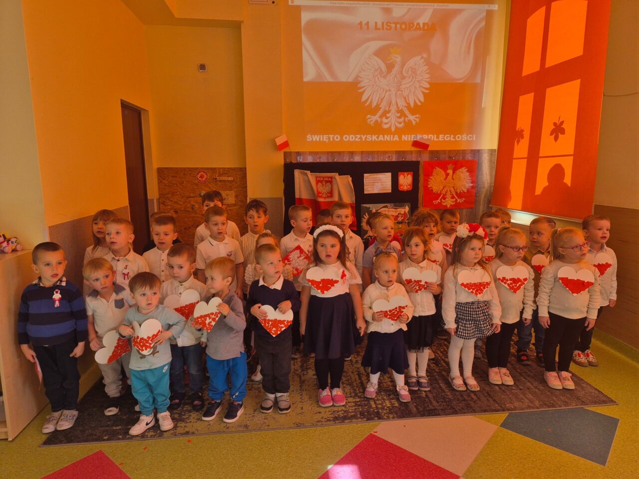 Dzień 11 listopada to jedna z najważniejszych dat w historii naszej ojczyzny. W przedszkolu od najmłodszych lat uczymy dzieci patriotyzmu i przywiązania do swojej ojczyzny oraz wpajamy szacunek dla polskich symboli. Dlatego też 7 listopada z okazji Narodowego Święta Niepodległości dzieci z naszego przedszkola uczestniczyły w Koncercie Patriotycznym „Nauczyciele dzieciom” oraz uroczyście zaśpiewały Hymn.