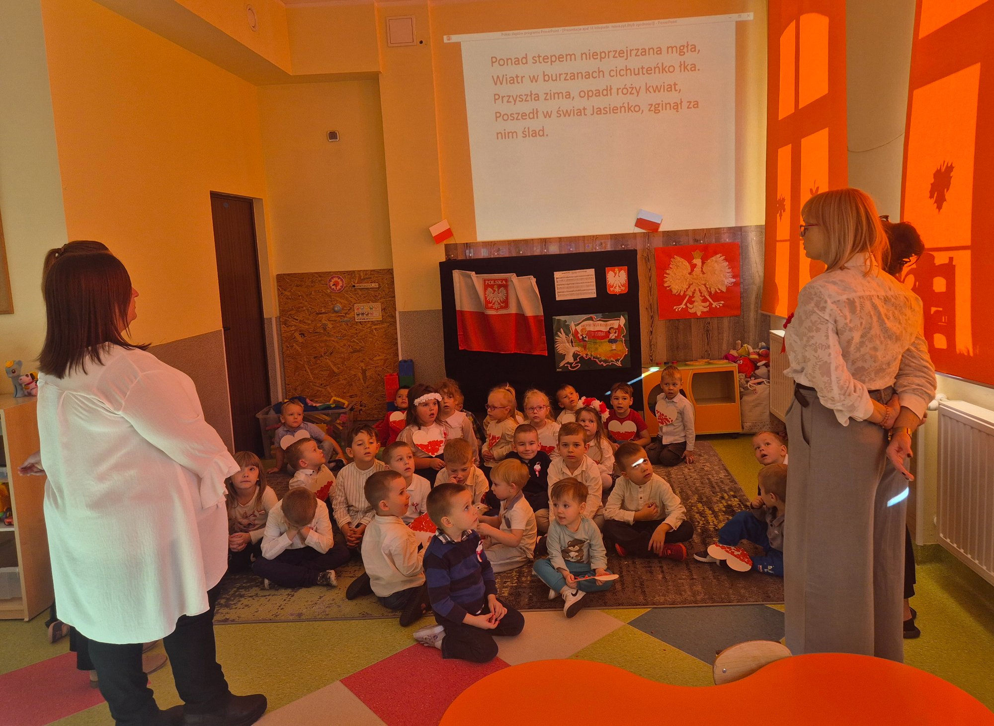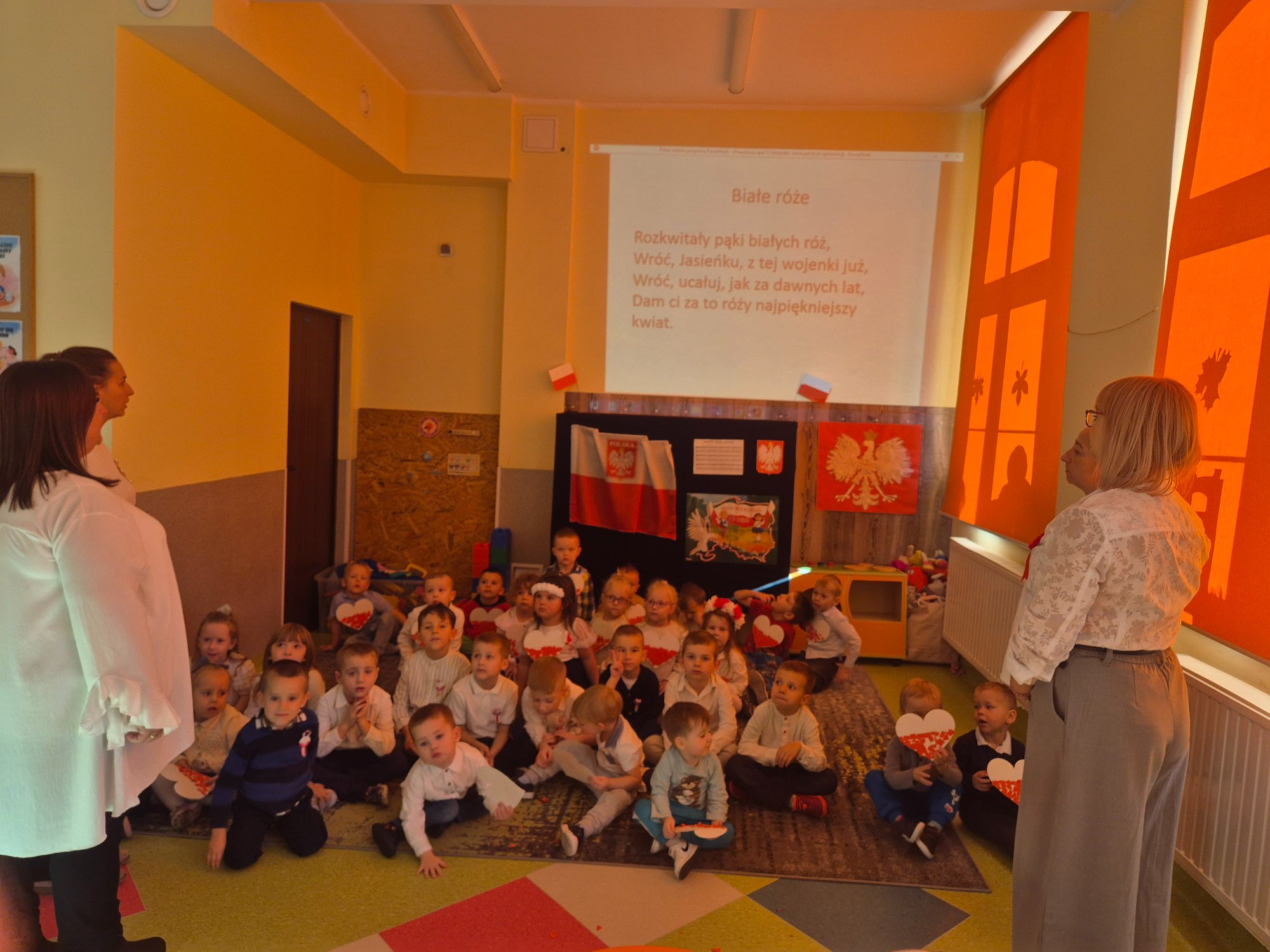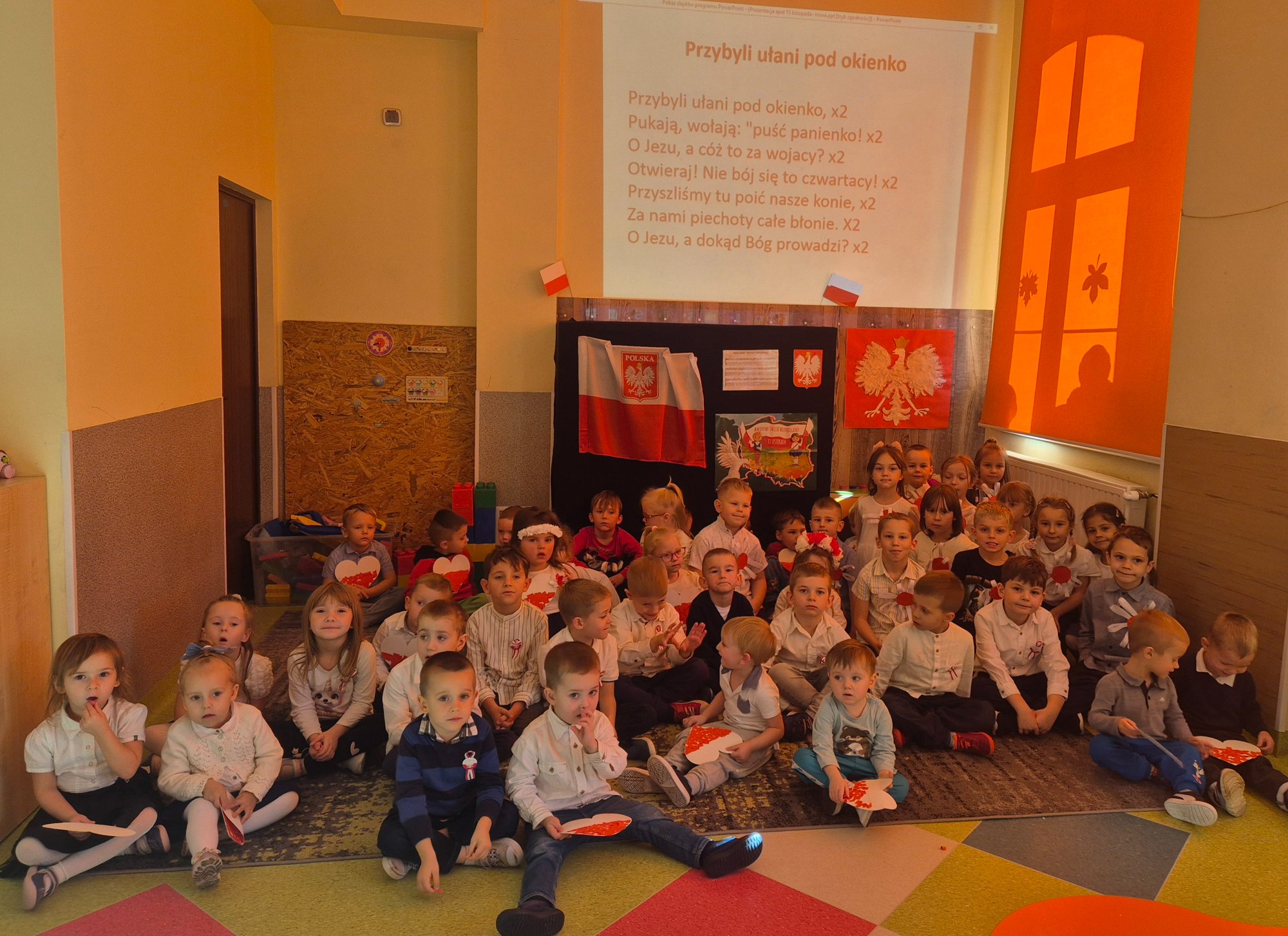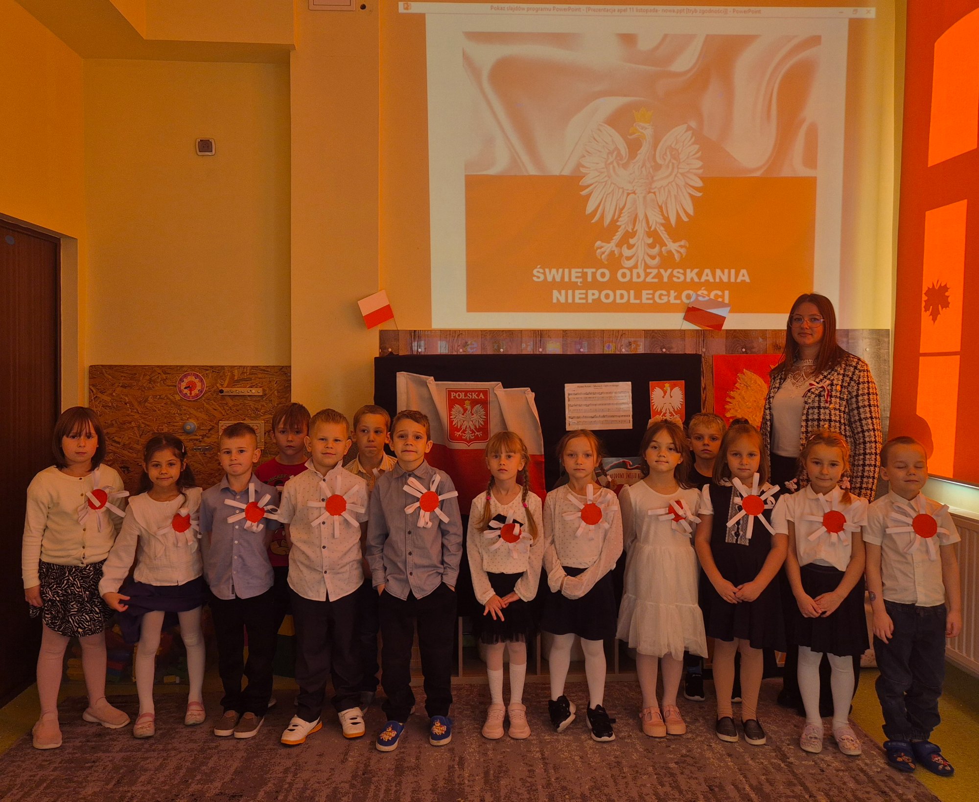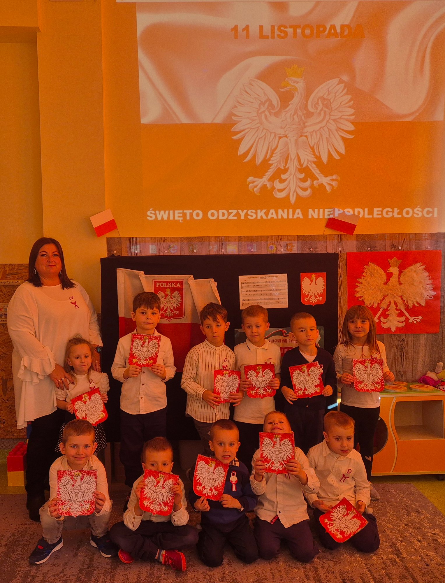 Dzień 11 listopada to jedna z najważniejszych dat w historii naszej ojczyzny. W przedszkolu od najmłodszych lat uczymy dzieci patriotyzmu i przywiązania do swojej ojczyzny oraz wpajamy szacunek dla polskich symboli. Dlatego też 7 listopada z okazji Narodowego Święta Niepodległości dzieci z naszego przedszkola uczestniczyły w Koncercie Patriotycznym „Nauczyciele dzieciom” oraz uroczyście zaśpiewały Hymn.