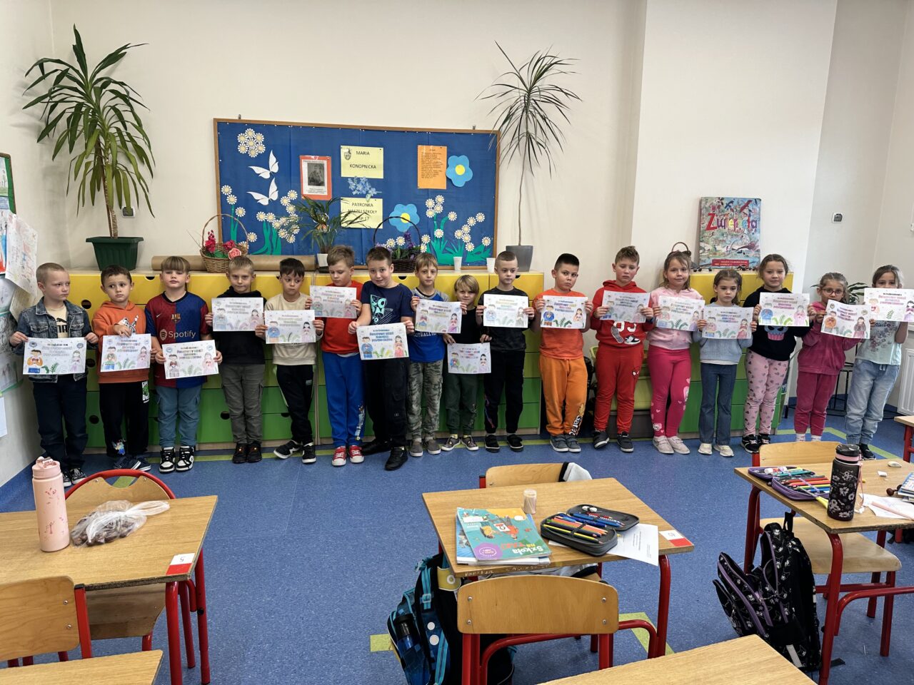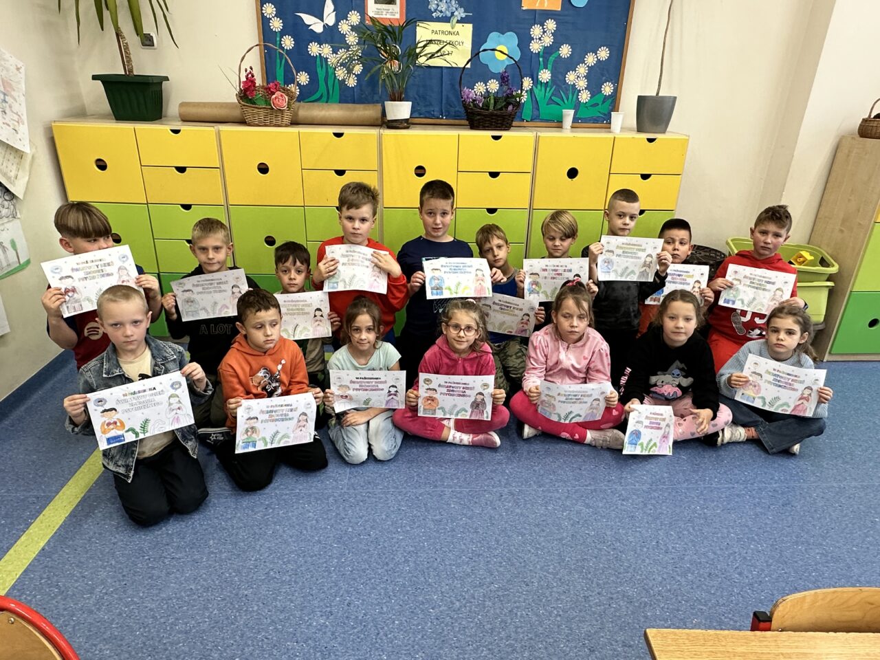 Podczas zajęć dzieci uczestniczyły w pogadankach o tym, co wpływa na nasze zdrowie psychiczne, jak możemy wspierać siebie i innych w trudnych chwilach oraz jak ważne jest mówienie o emocjach. Uczniowie oglądali także filmy edukacyjne oraz kolorowali tematyczne kolorowanki, które pomogły im lepiej zrozumieć znaczenie pozytywnych emocji i życzliwości wobec innych.