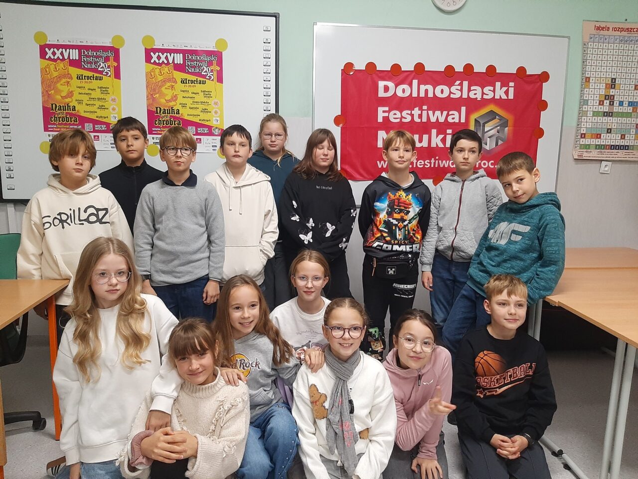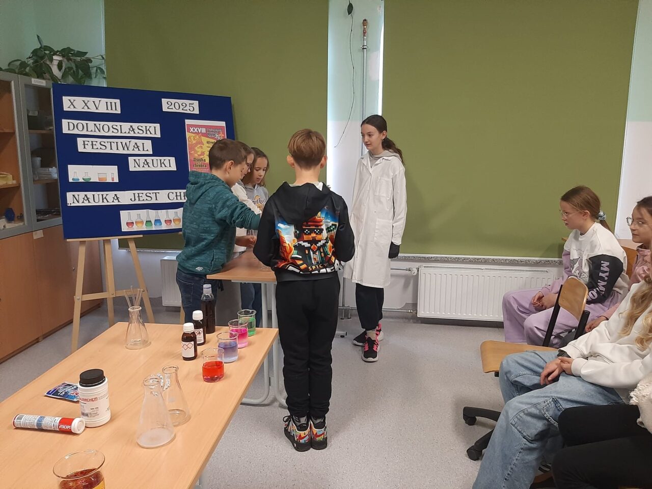 27.10.2025 w ZSP1 kolejny raz organizowaliśmy zajęcia dla uczniów szkół podstawowych w ramach XXVIII Dolnośląskiego Festiwalu Nauki. W tym roku odwiedziła nas PSP nr 1 W Boguszowie Gorcach i Społeczna Szkoła Podstawowa w Świdnicy oraz uczniowie ZSP1. Hasło tegorocznego festiwalu to: „Nauka jest chrobra”. Zajęcia prowadziły Pani Małgorzata Opala- warsztaty przyrodnicze i Pani Edyta Wydra – pokazy chemiczne.
