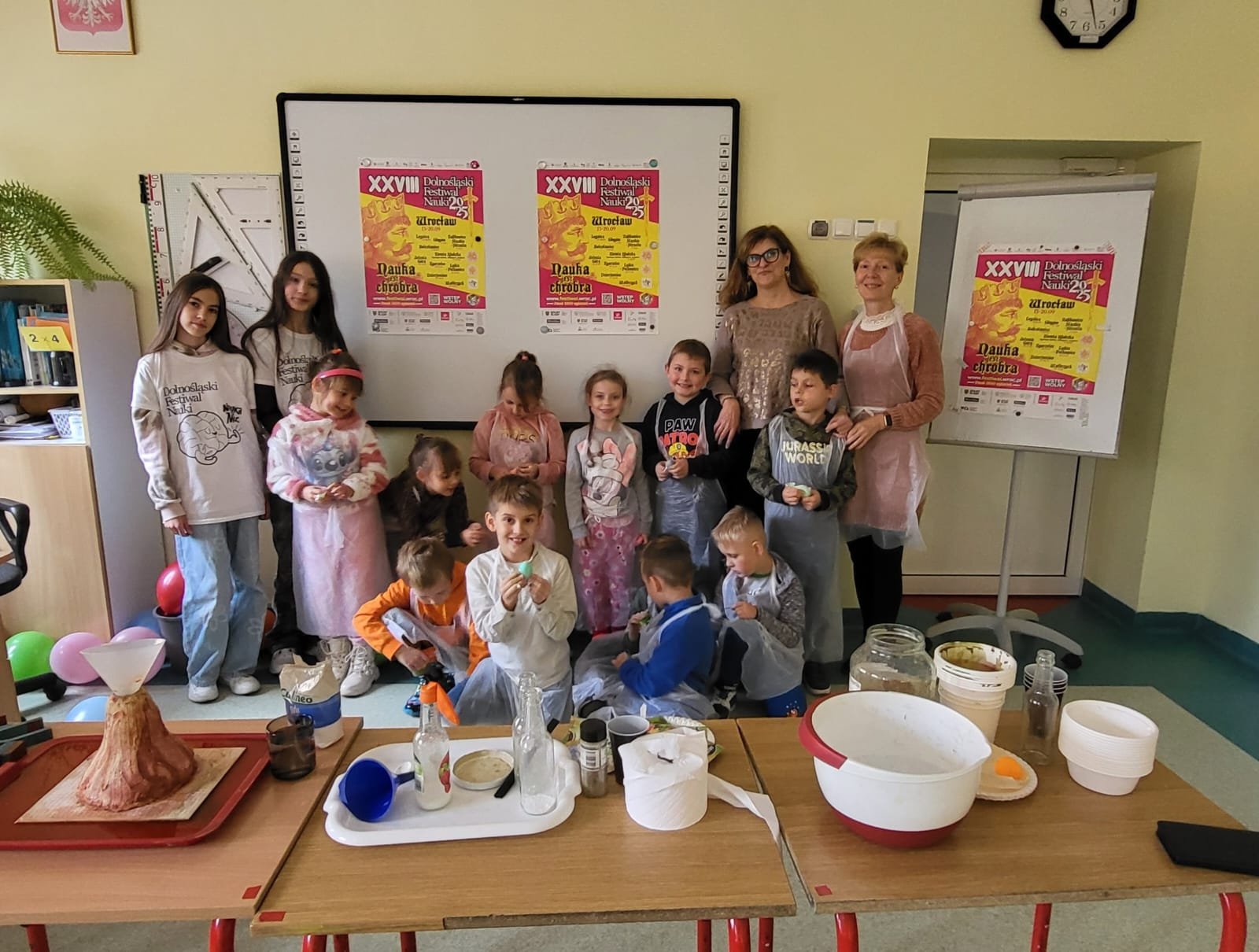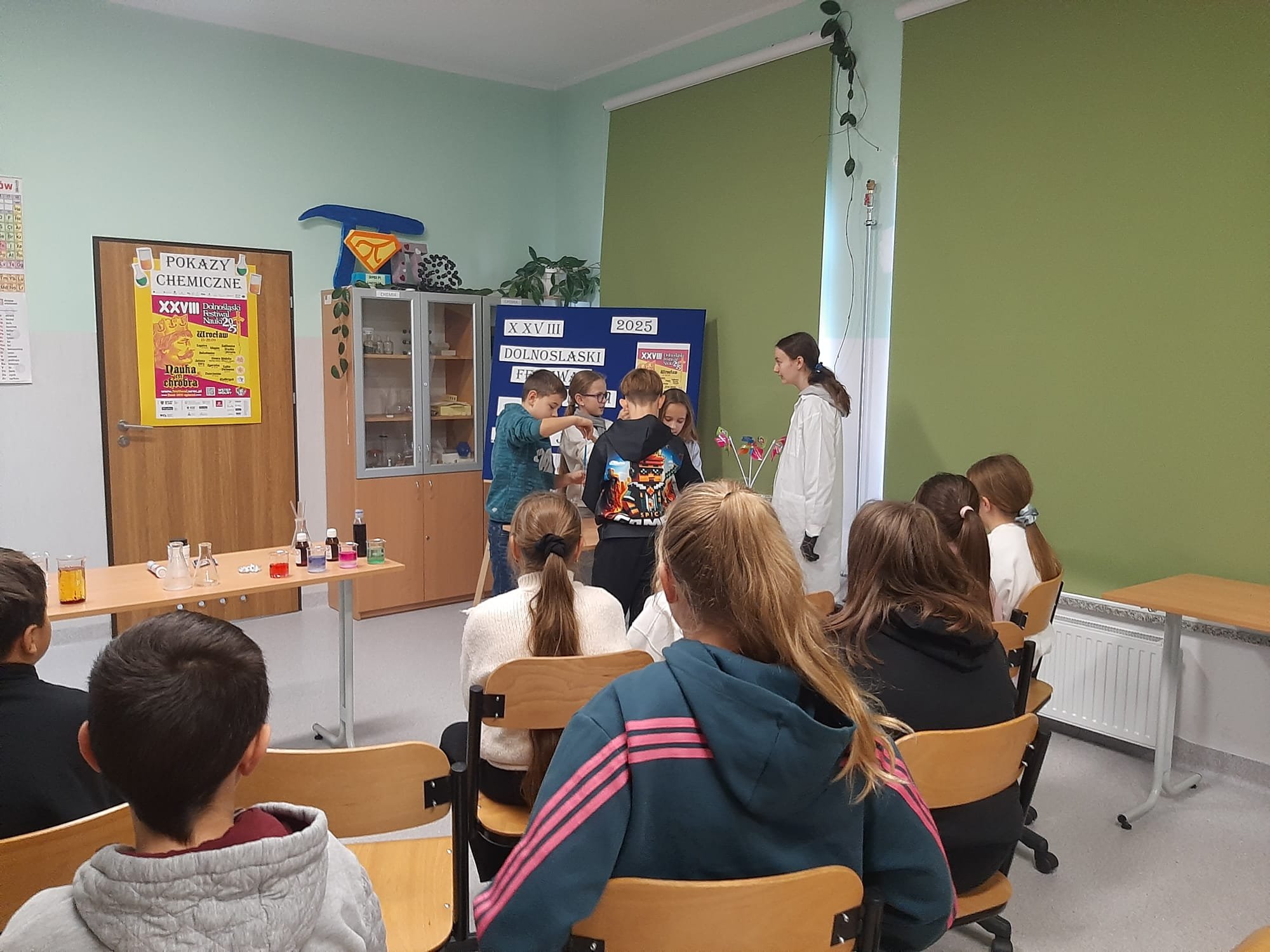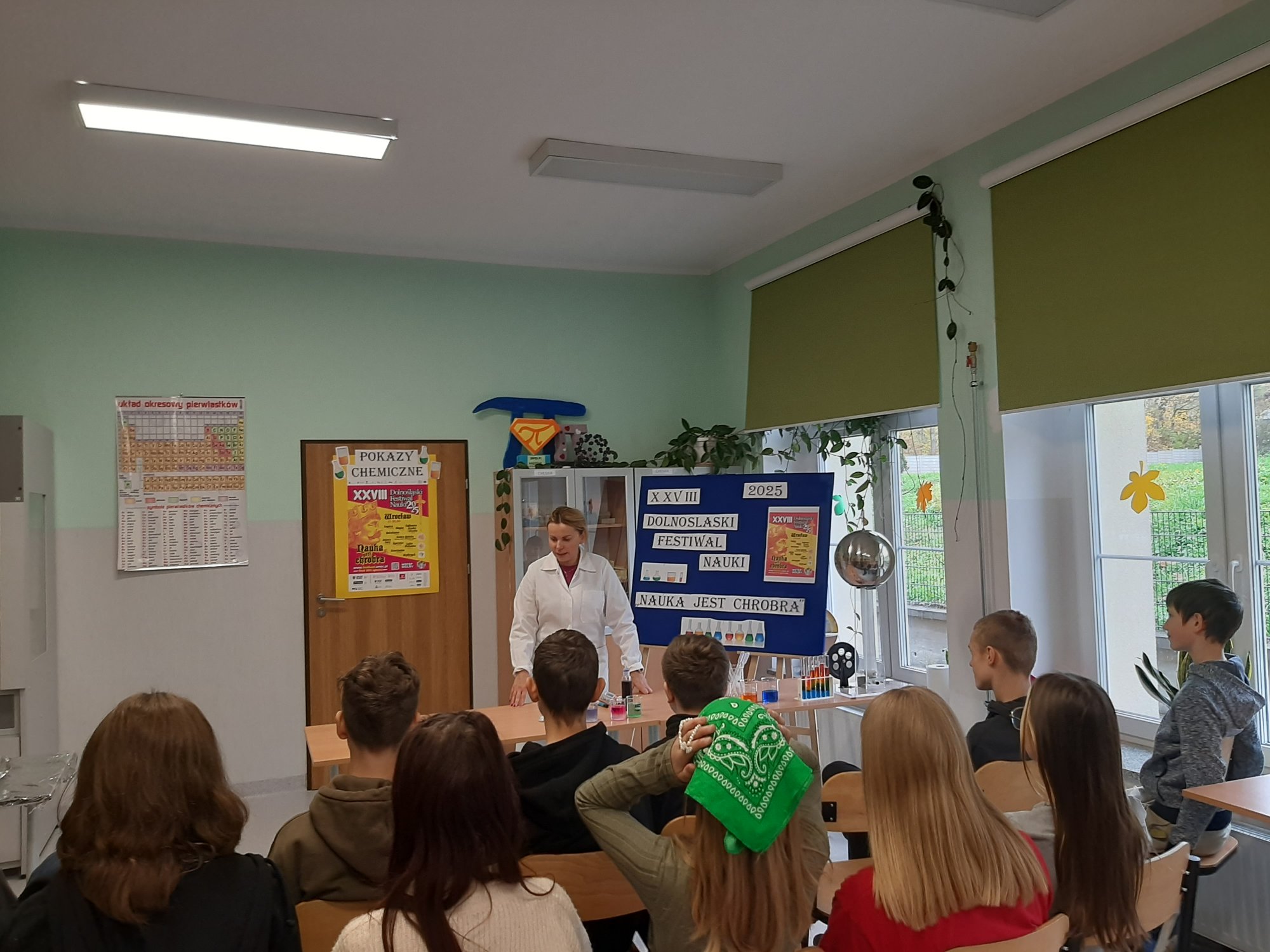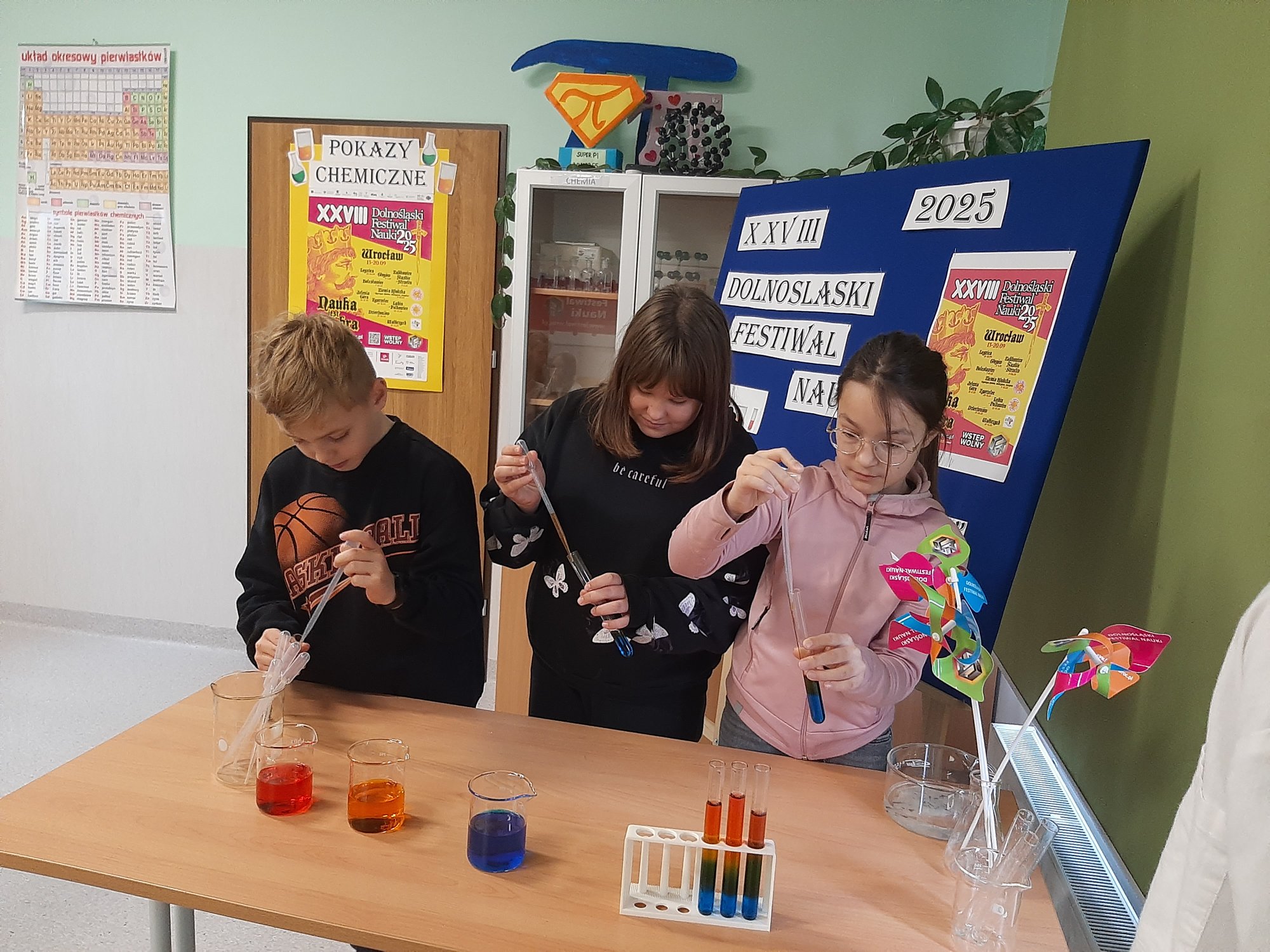 27.10.2025 w ZSP1 kolejny raz organizowaliśmy zajęcia dla uczniów szkół podstawowych w ramach XXVIII Dolnośląskiego Festiwalu Nauki. W tym roku odwiedziła nas PSP nr 1 W Boguszowie Gorcach i Społeczna Szkoła Podstawowa w Świdnicy oraz uczniowie ZSP1. Hasło tegorocznego festiwalu to: „Nauka jest chrobra”. Zajęcia prowadziły Pani Małgorzata Opala- warsztaty przyrodnicze i Pani Edyta Wydra – pokazy chemiczne.